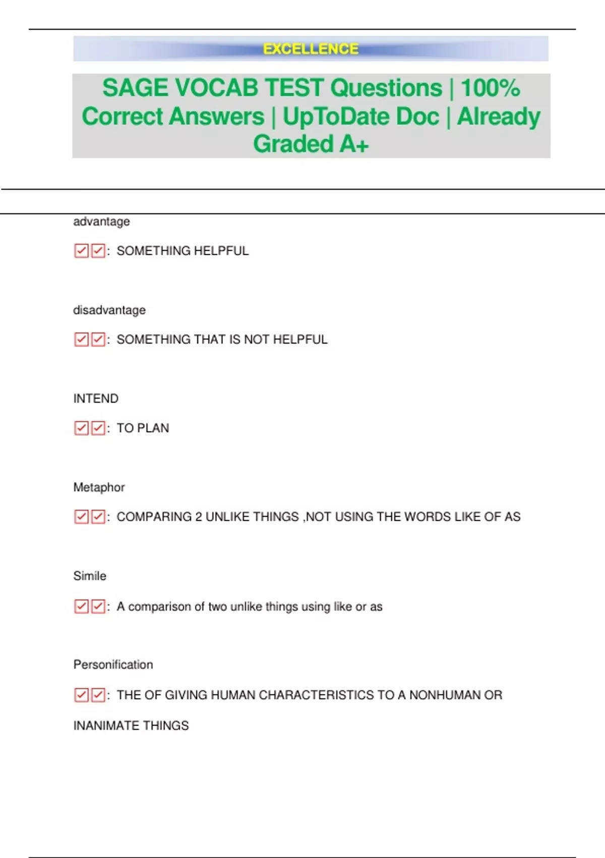 SAGE VOCAB TEST Questions | 100% Correct Answers | UpToDate Doc | Already Graded A+