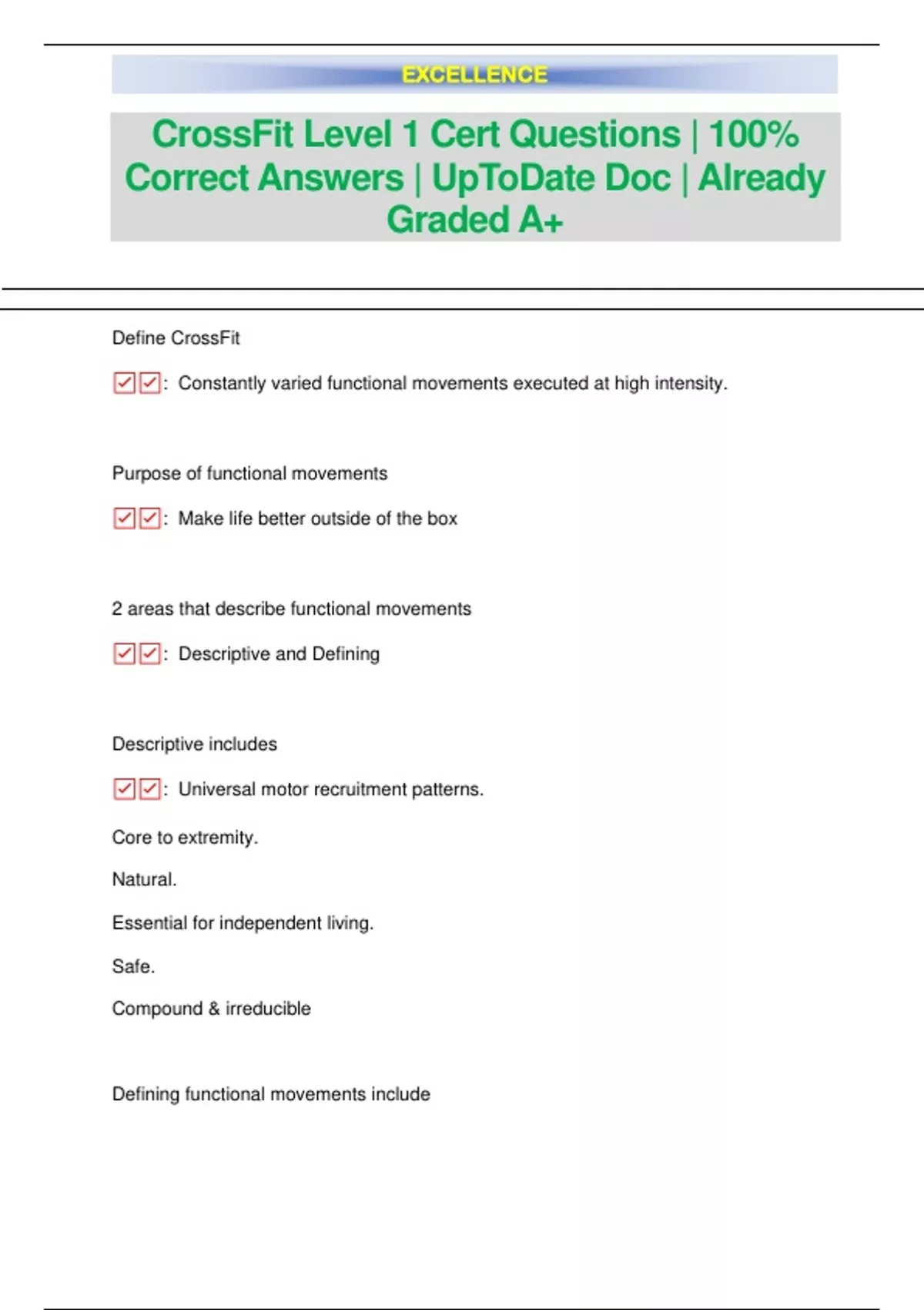 CrossFit Level 1 Cert Questions | 100% Correct Answers | UpToDate Doc | Already Graded A+