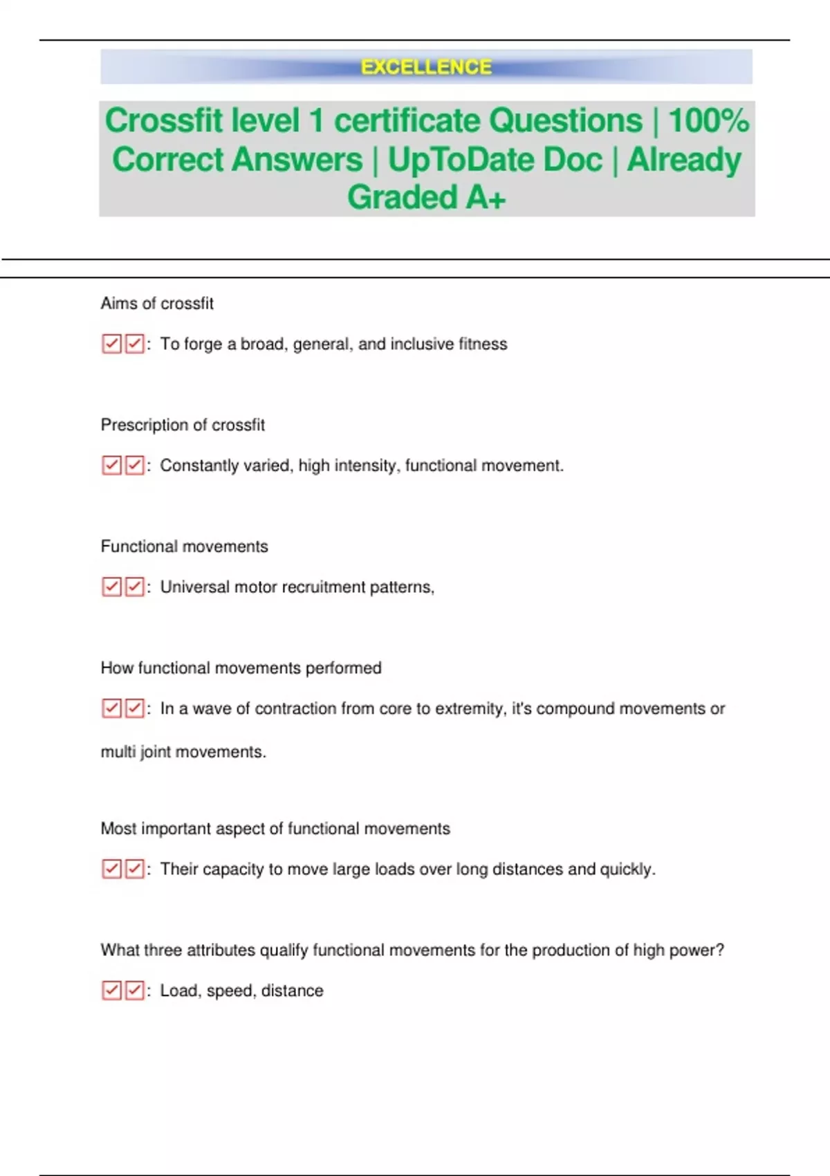 Crossfit level 1 certification Questions | 100% Correct Answers | UpToDate Doc | Already Graded A+