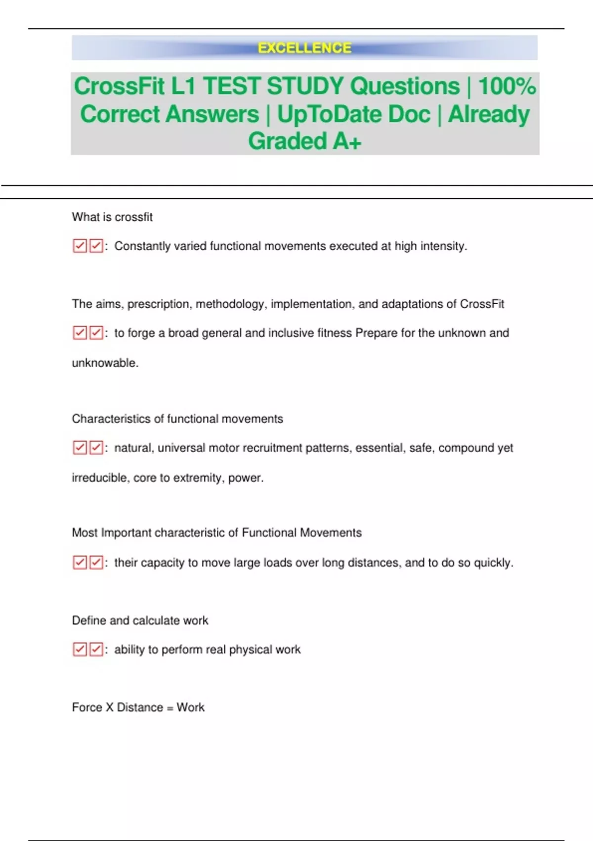 CrossFit L1 TEST STUDY Questions | 100% Correct Answers | UpToDate Doc | Already Graded A+