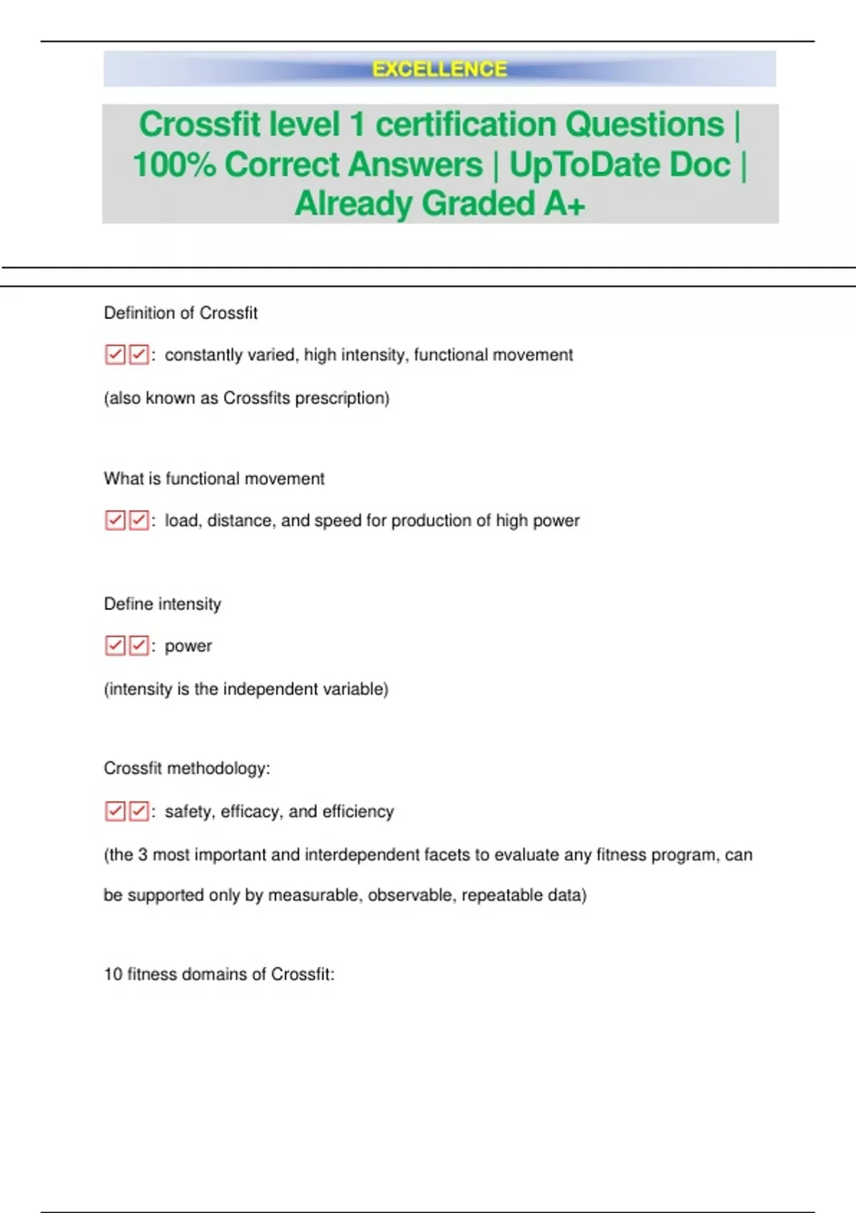 Crossfit level 1 certificate Questions | 100% Correct Answers | UpToDate Doc | Already Graded A+