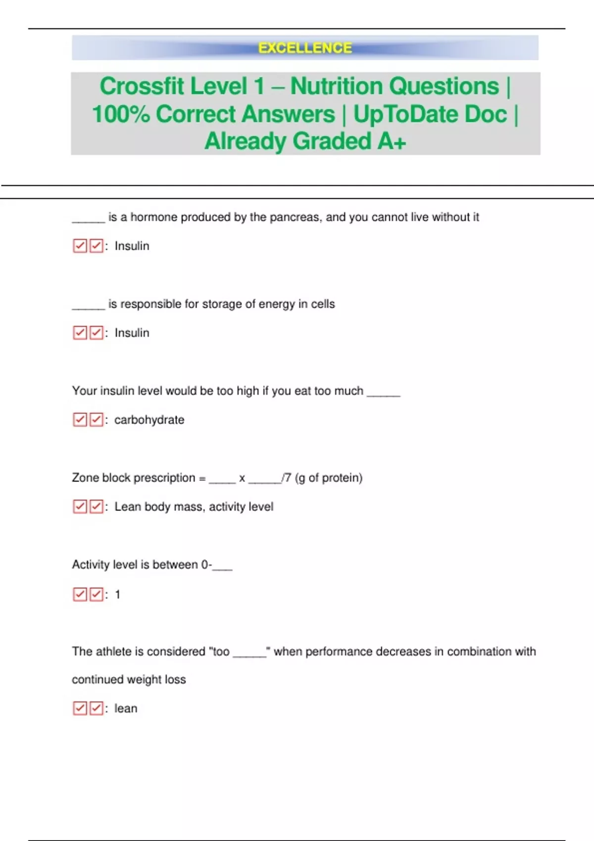 Crossfit Level 1 – Nutrition Questions | 100% Correct Answers | UpToDate Doc | Already Graded A+