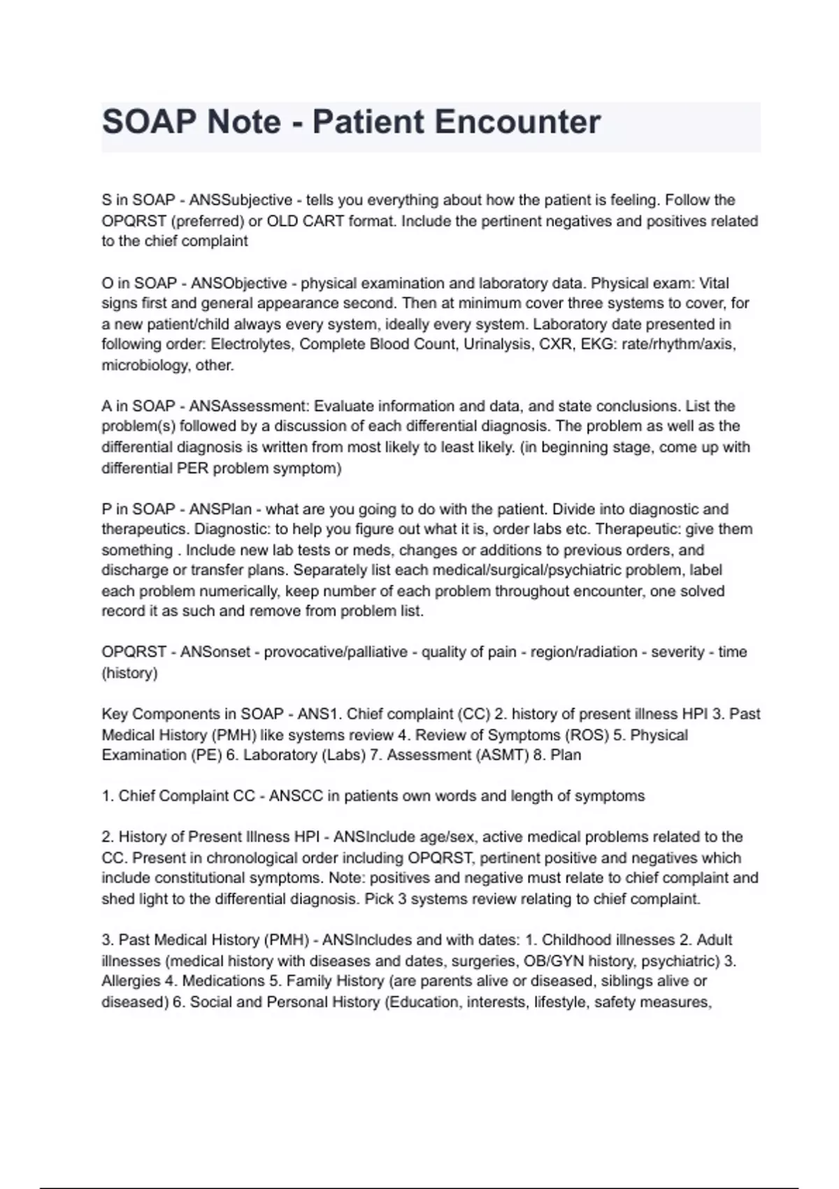 SOAP Note - Patient Encounter questions and answers A+ score assured 2024/2025