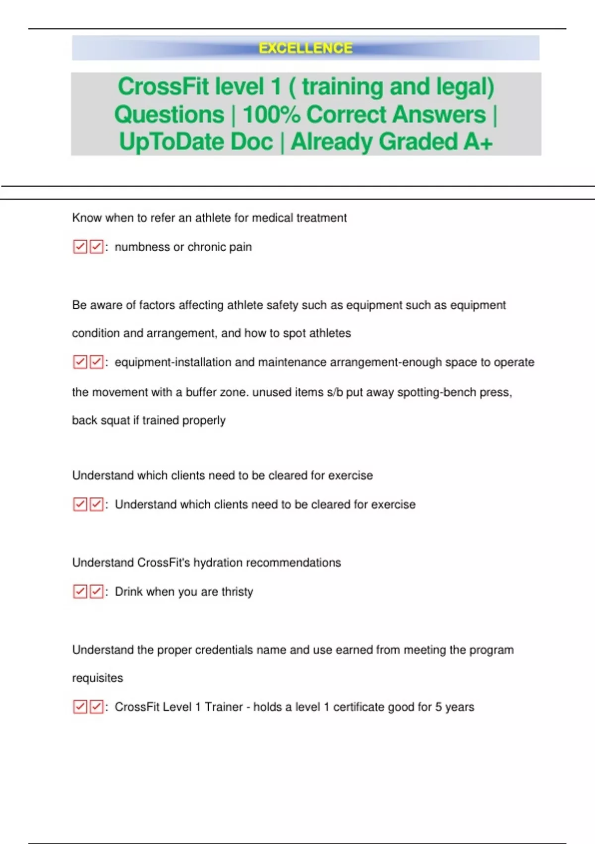 CrossFit level 1 ( training and legal) Questions | 100% Correct Answers | UpToDate Doc | Already Graded A+