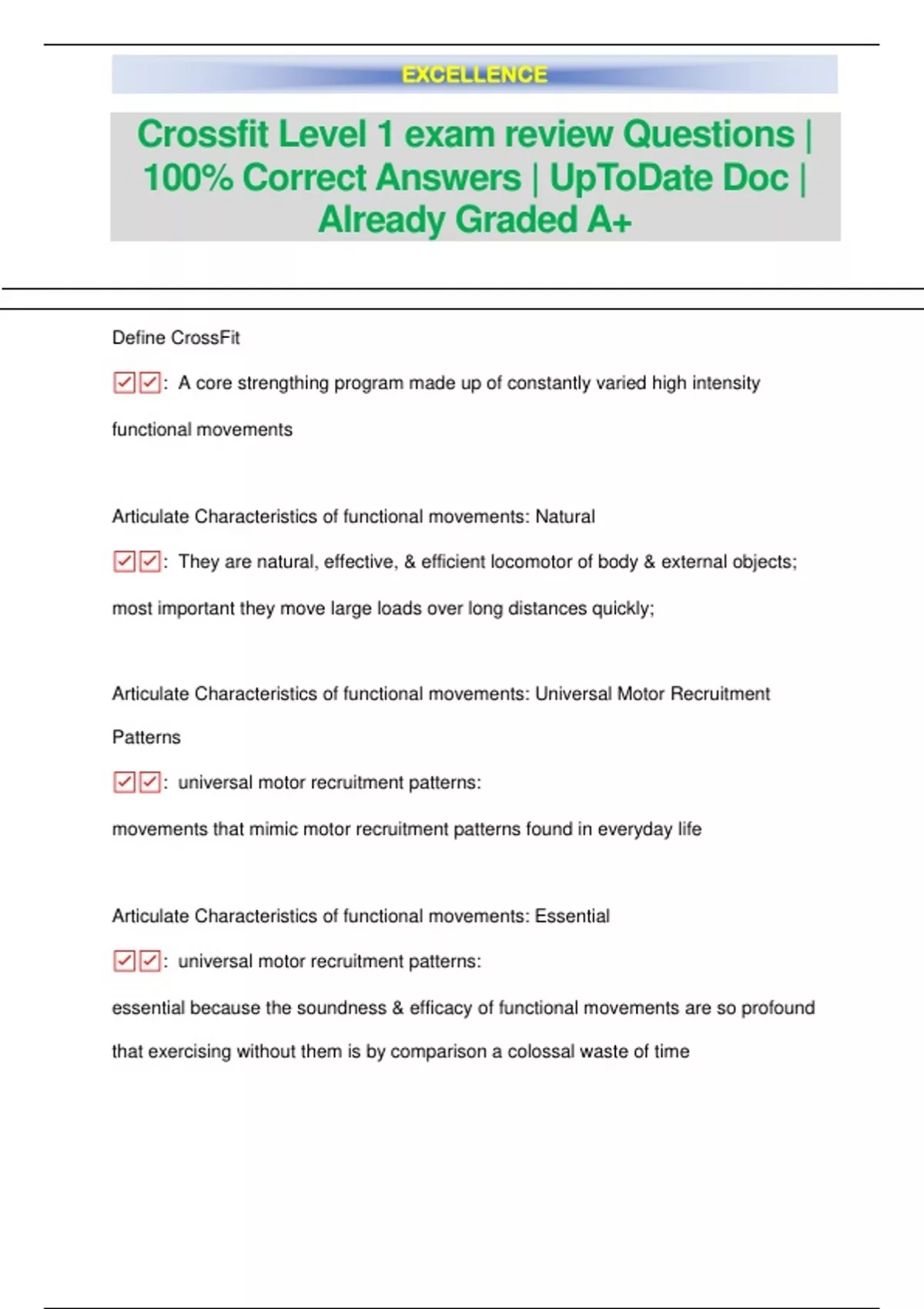 Crossfit Level 1 exam review Questions | 100% Correct Answers | UpToDate Doc | Already Graded A+