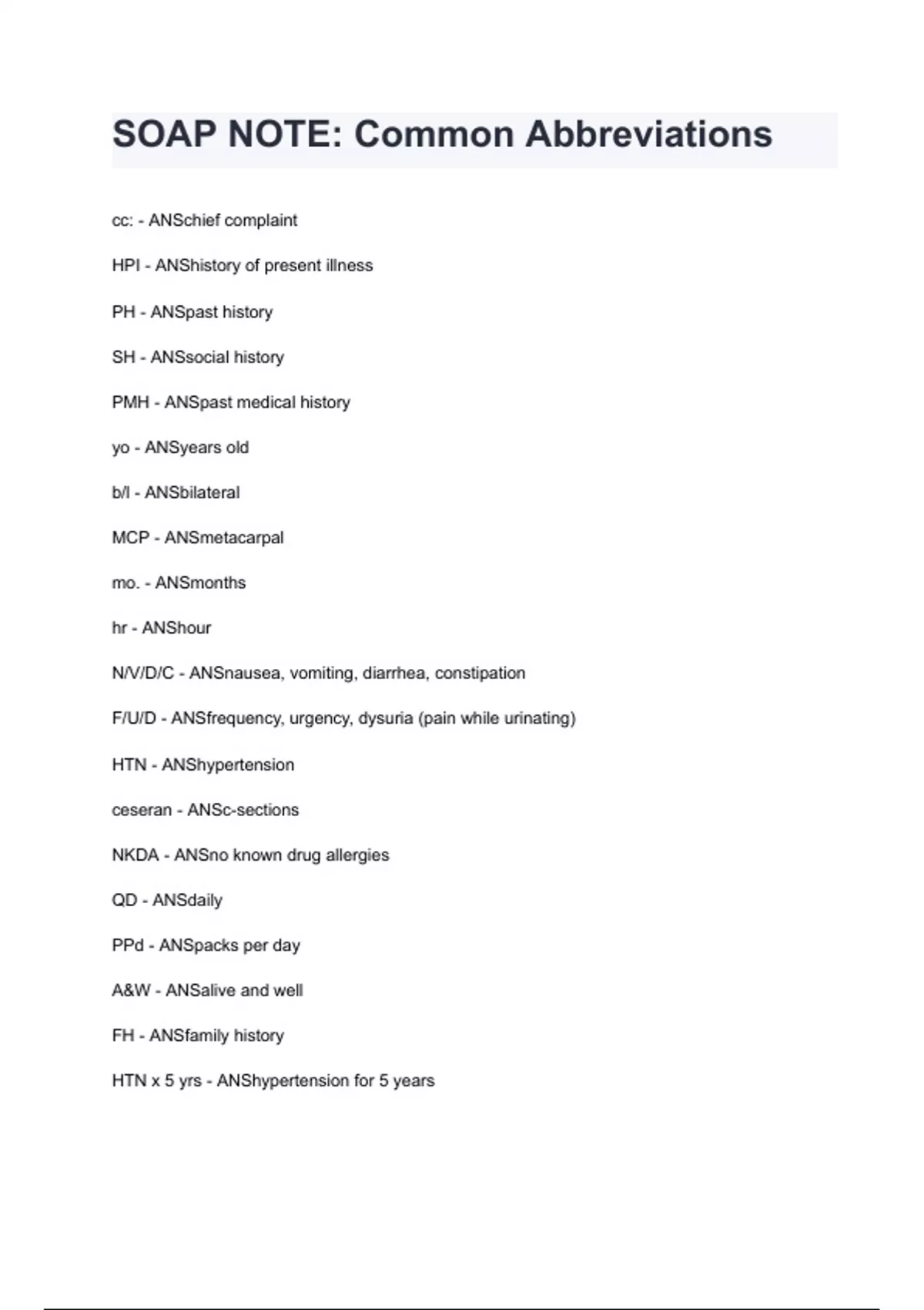 SOAP NOTE: Common Abbreviations questions and answers A+ score assured 2024/2025