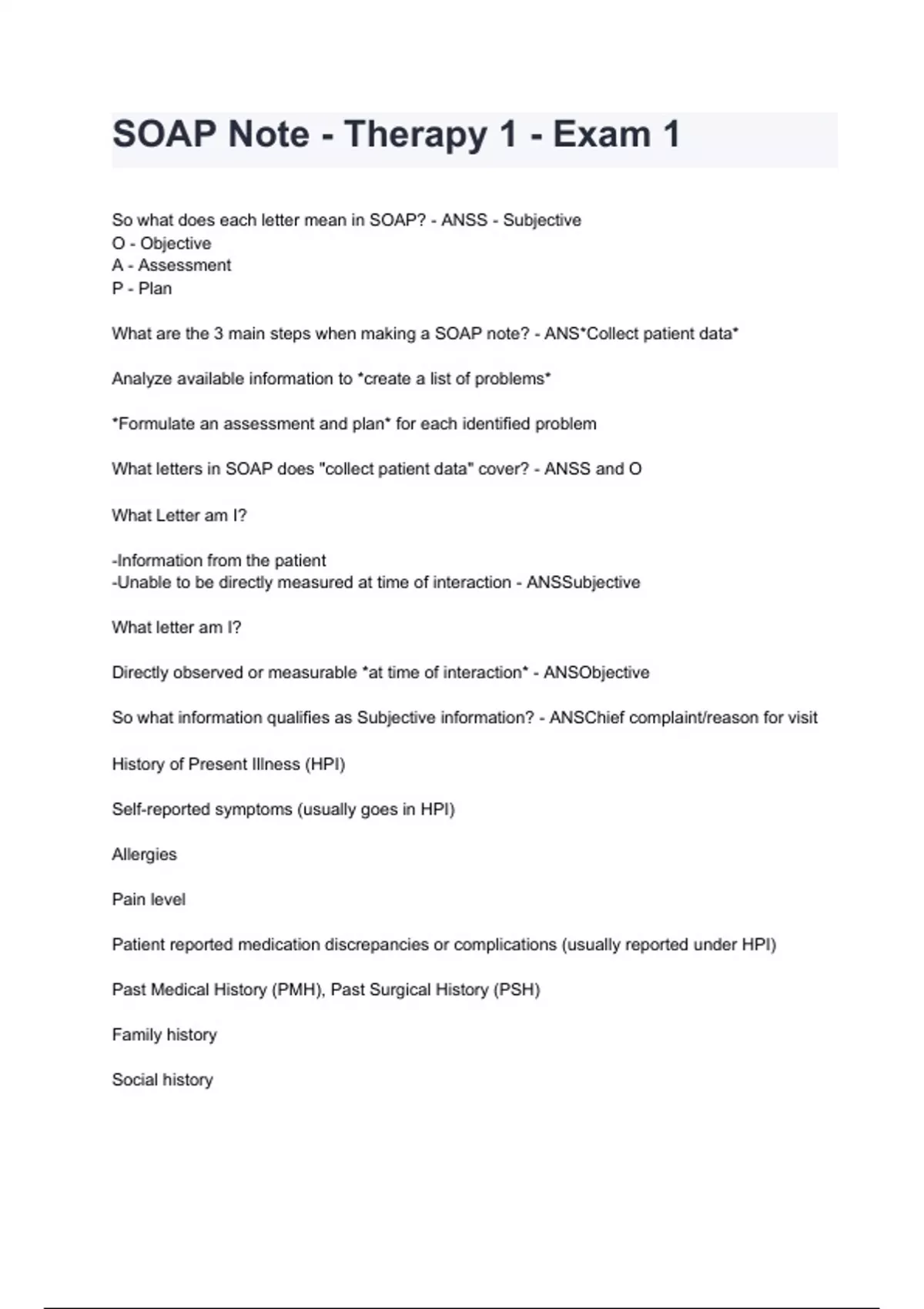 SOAP Note - Therapy 1 - Exam 1 questions and answers A+ score assured 2024/2025