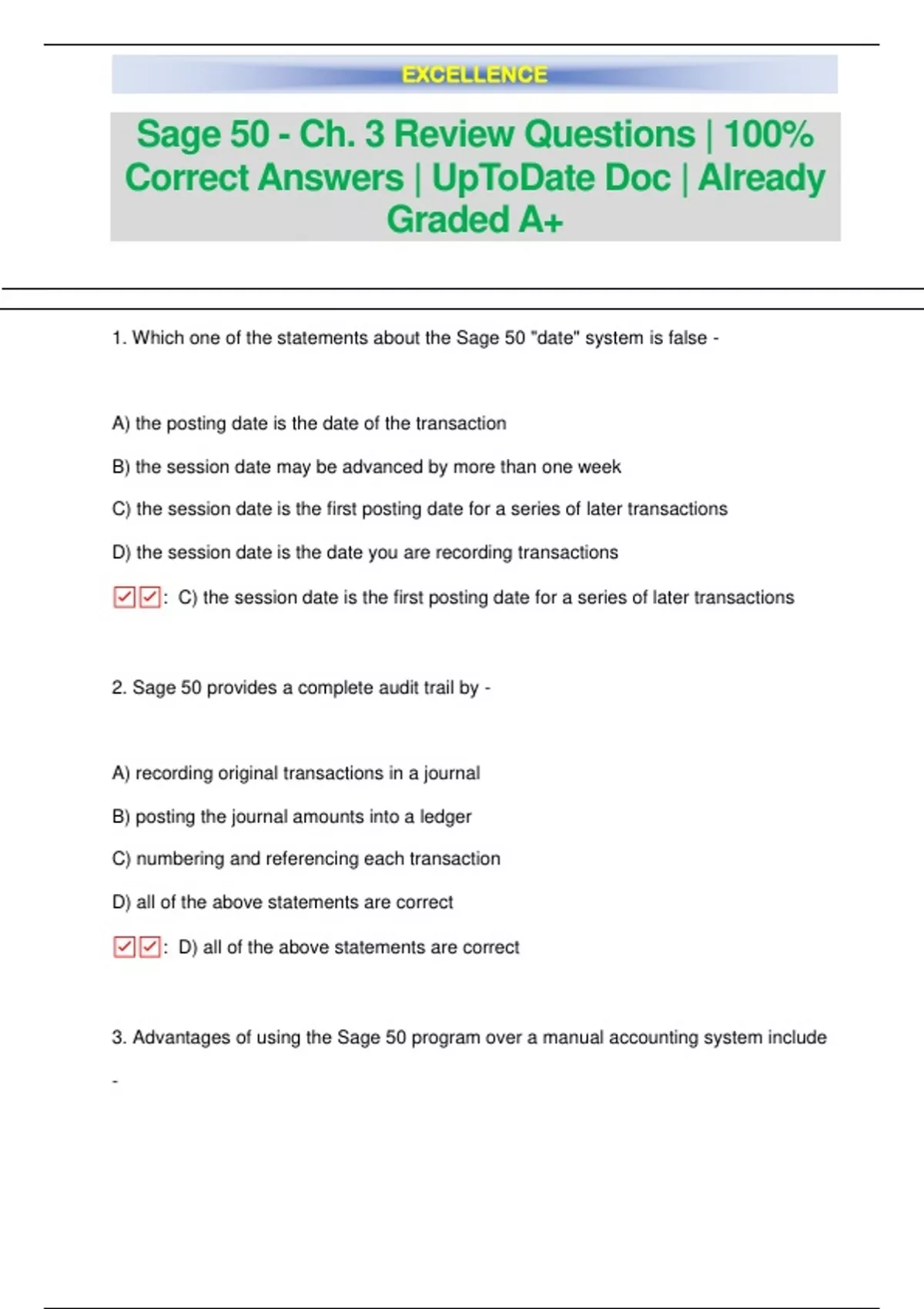Sage 50 - Ch. 3 Review Questions | 100% Correct Answers | UpToDate Doc | Already Graded A+