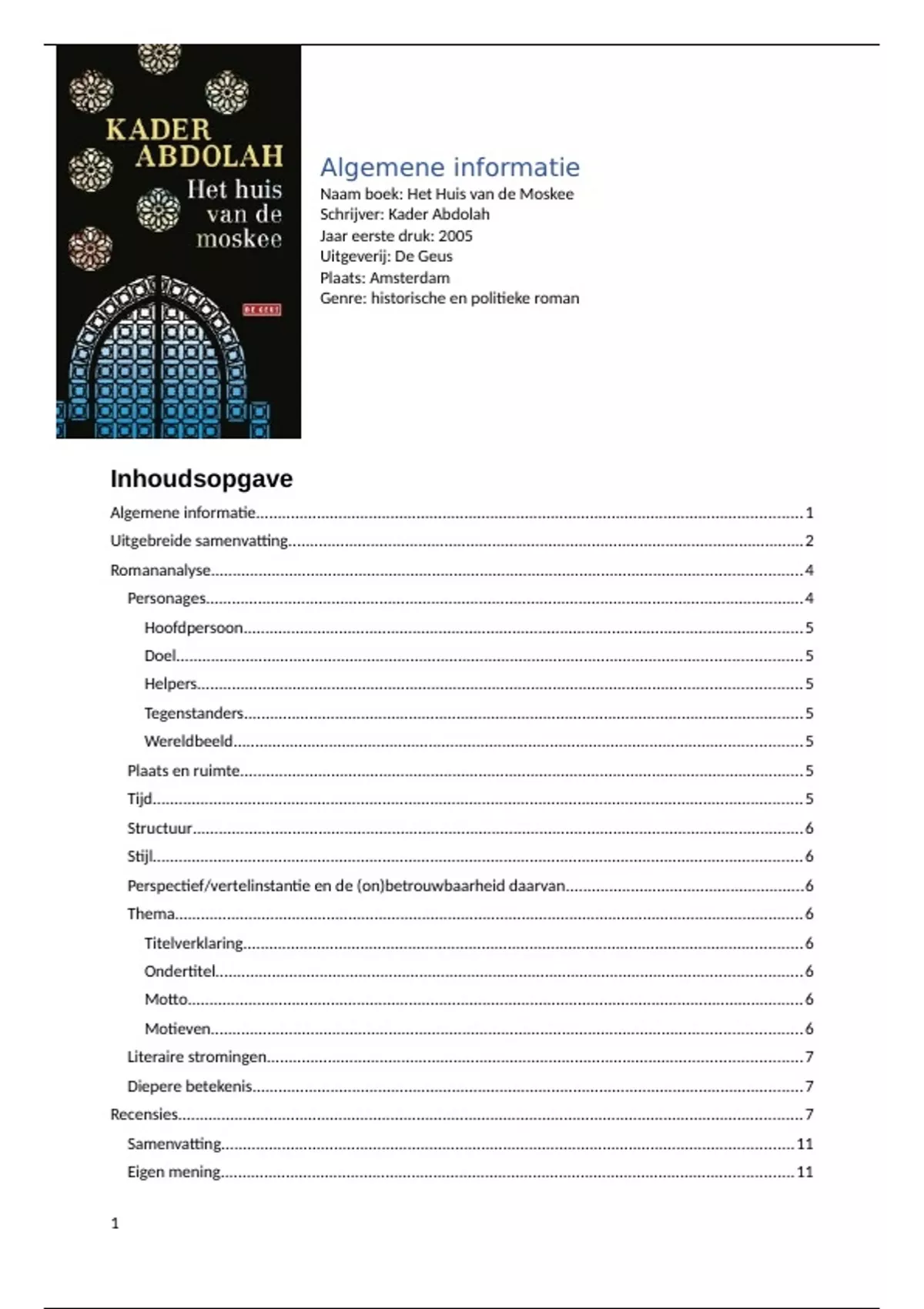 Compleet boekverslag Het huis van de moskee van Kader Abdolah