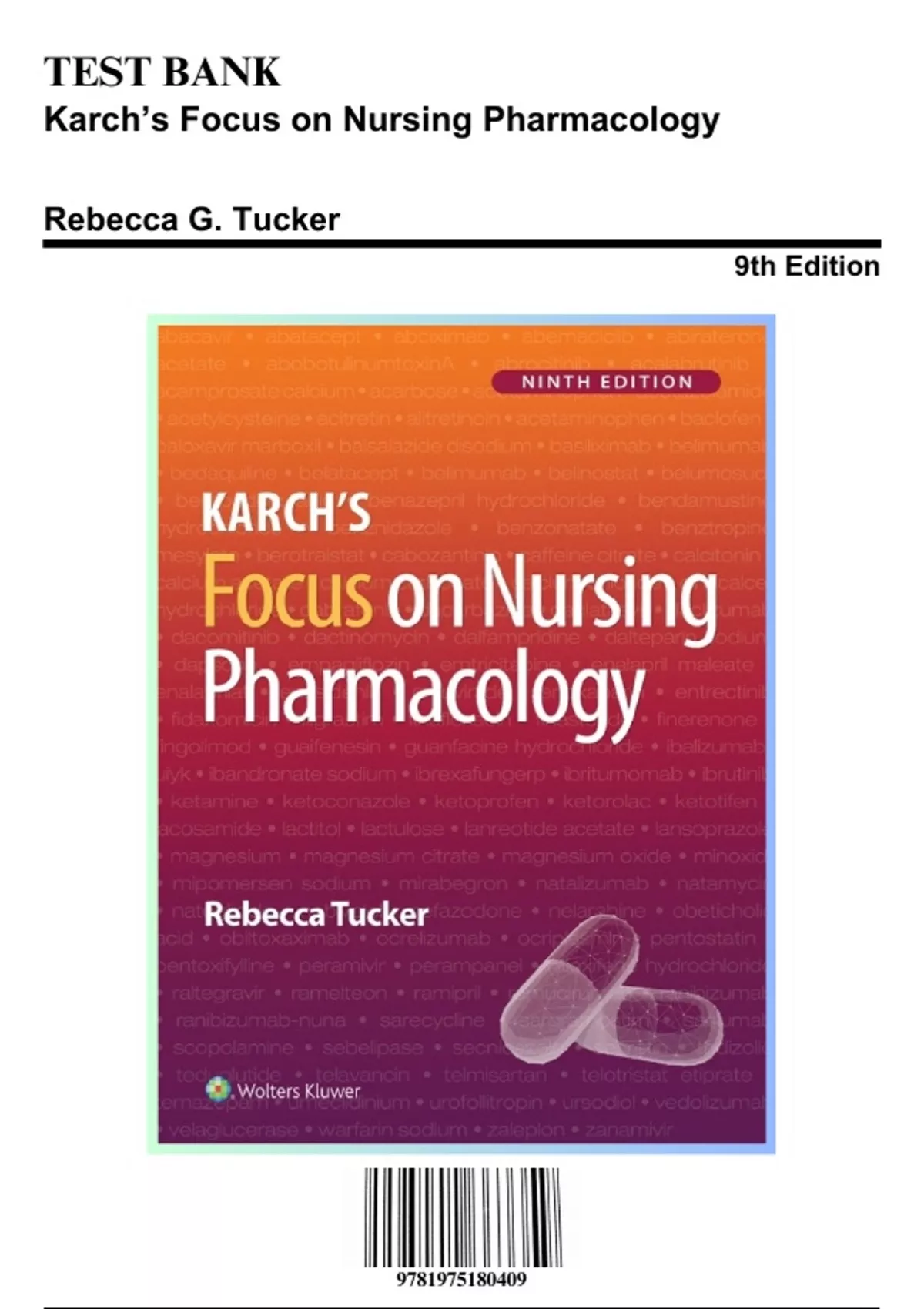 Test Bank for Karch’s Focus on Nursing Pharmacology, 9th Edition by Tucker, 9781975180409, Covering Chapters 1-60 | Includes Rationales