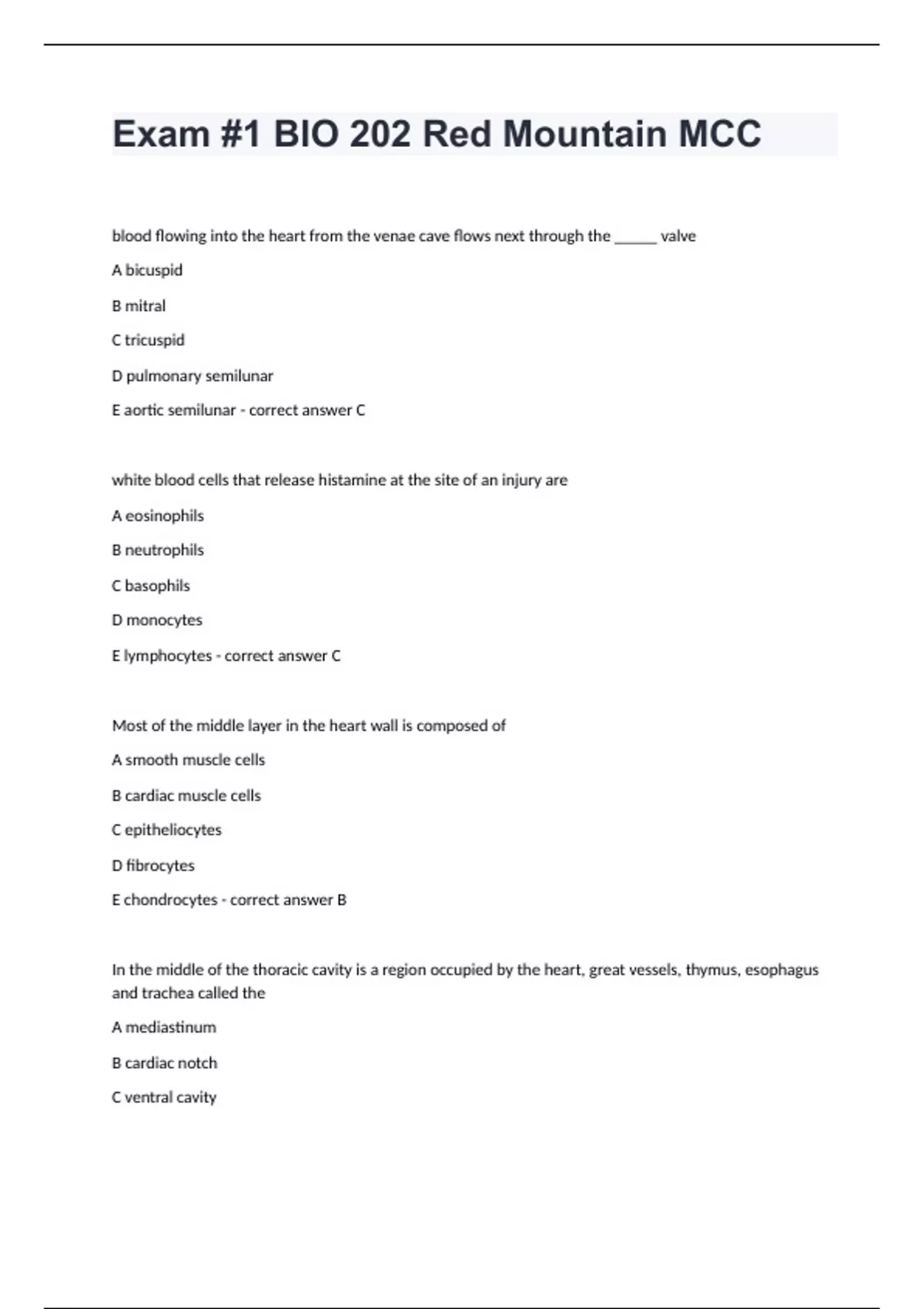 BIO 202 Arizona State University -Exam #1 BIO 202 Red Mountain MCC verified/passed