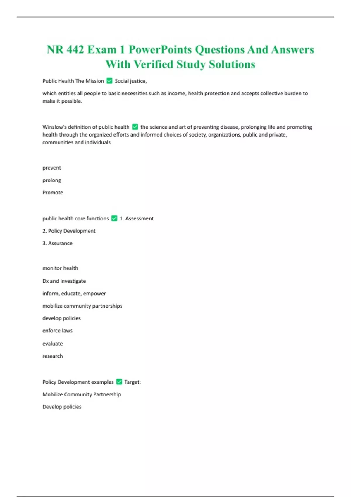 NR 442 Exam 1 PowerPoints Questions And Answers With Verified Study Solutions NR 442 Exam 1 PowerPoints Questions And Answers With Verified Study Solutions