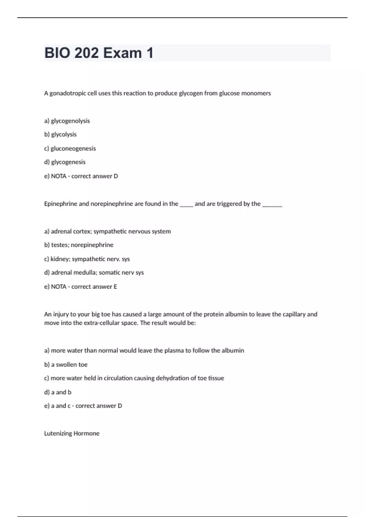 BIO 202 Arizona State University -BIO 202 Exam 1 questions well answered