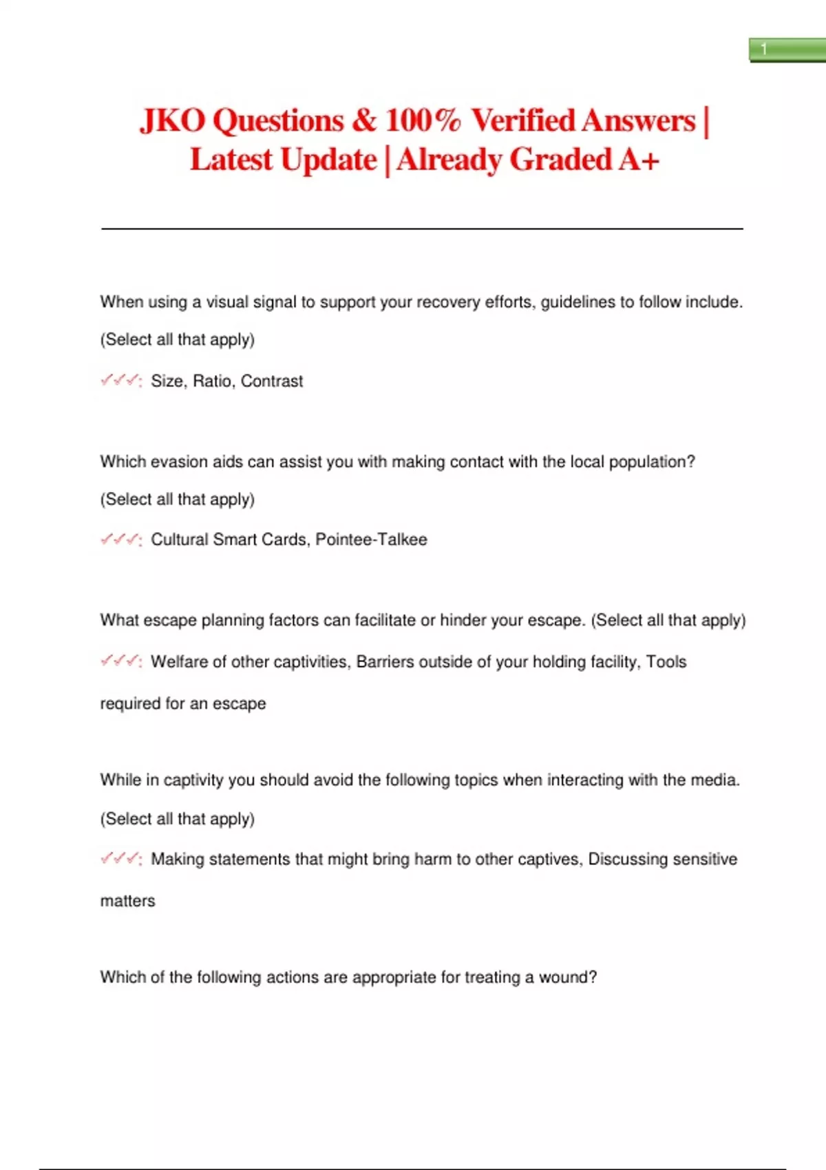 JKO Questions & 100% Verified Answers | Latest Update | Already Graded A+