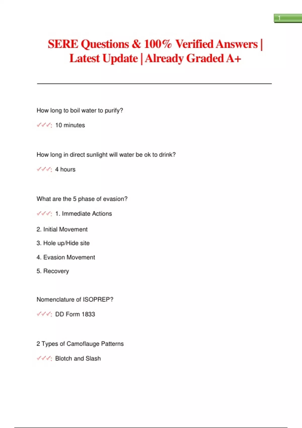 SERE Questions & 100% Verified Answers | Latest Update | Already Graded A+