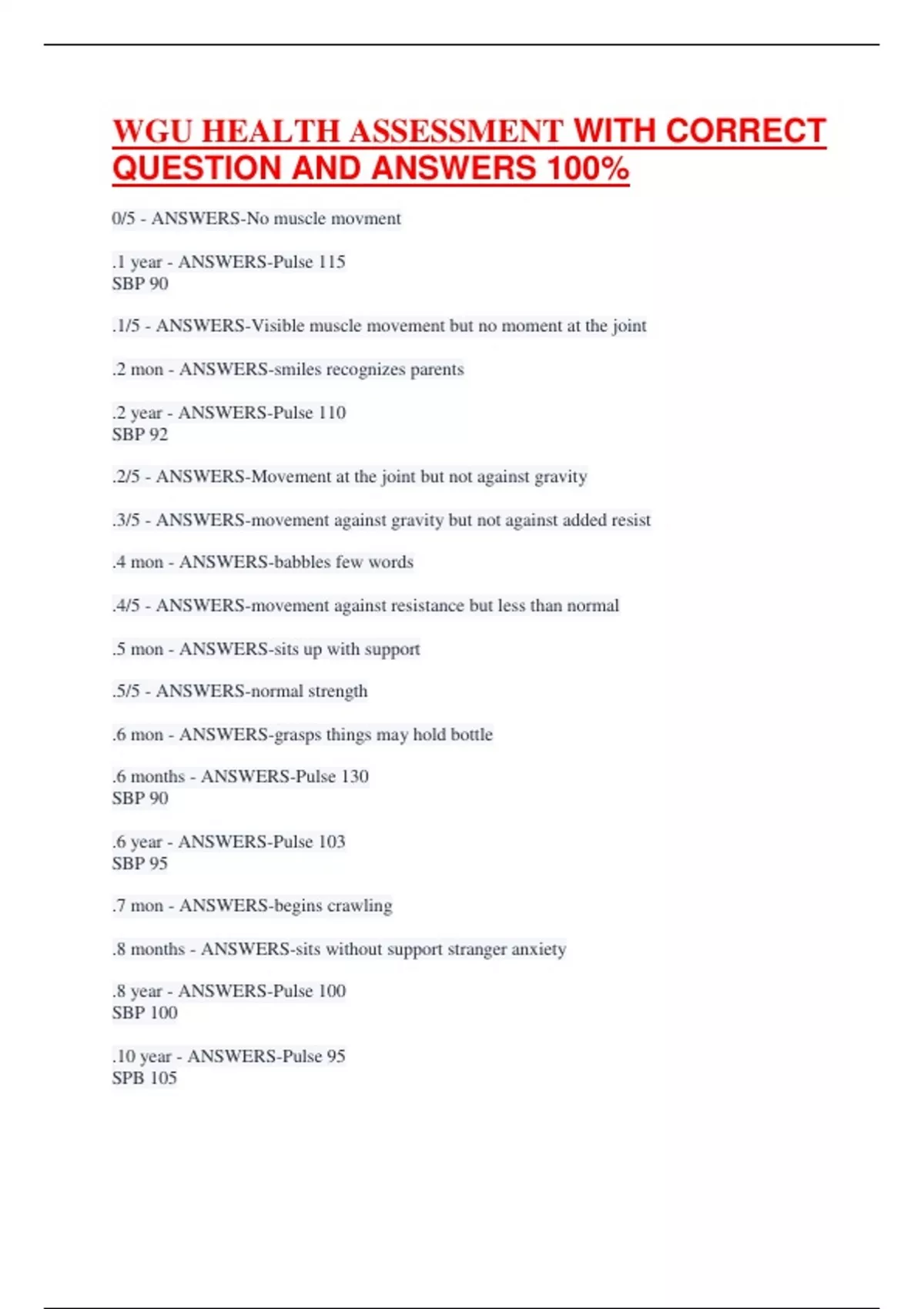WGU HEALTH ASSESSMENT WITH CORRECT QUESTION AND ANSWERS 100%