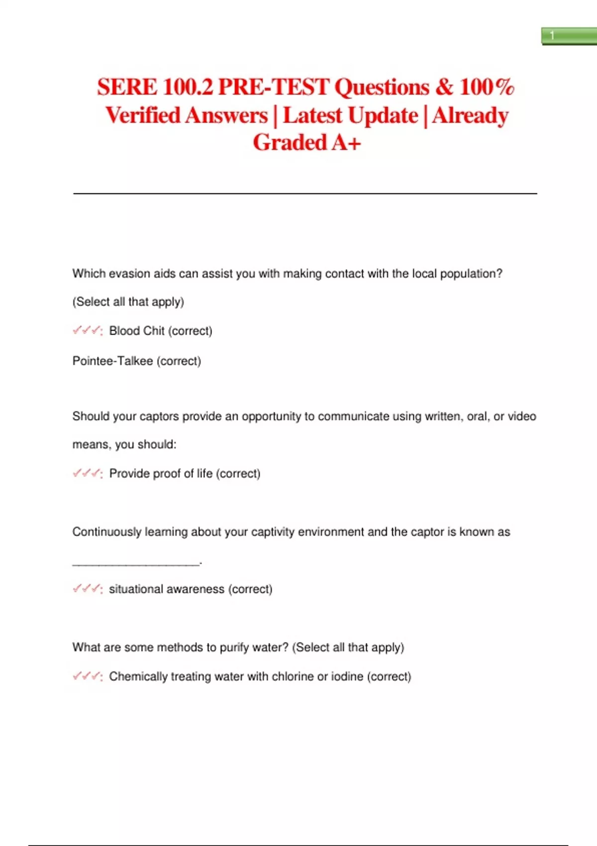 SERE 100.2 PRE-TEST Questions & 100% Verified Answers | Latest Update | Already Graded A+