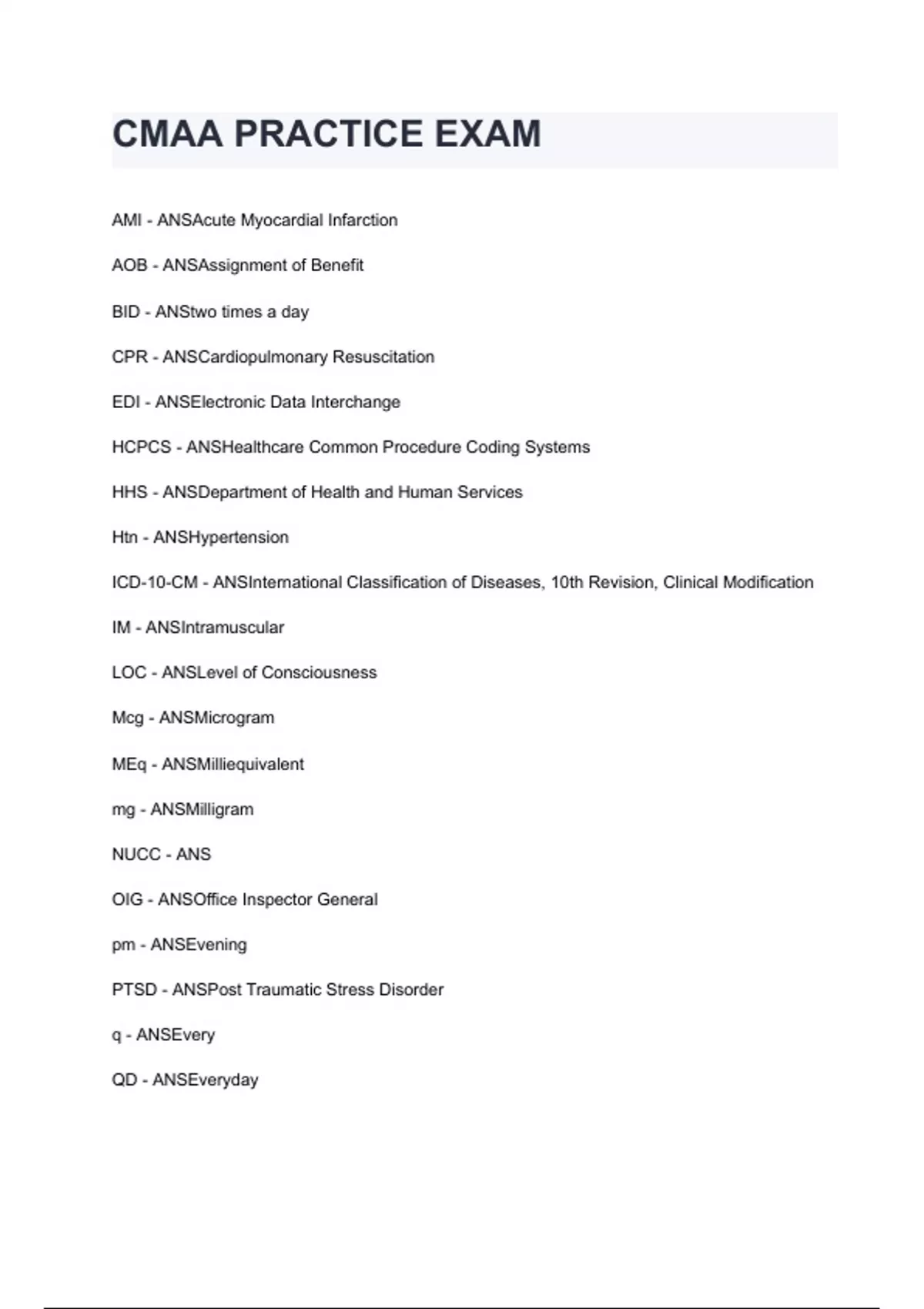 CMAA PRACTICE EXAM questions and answers A+ score assured 2024/2025