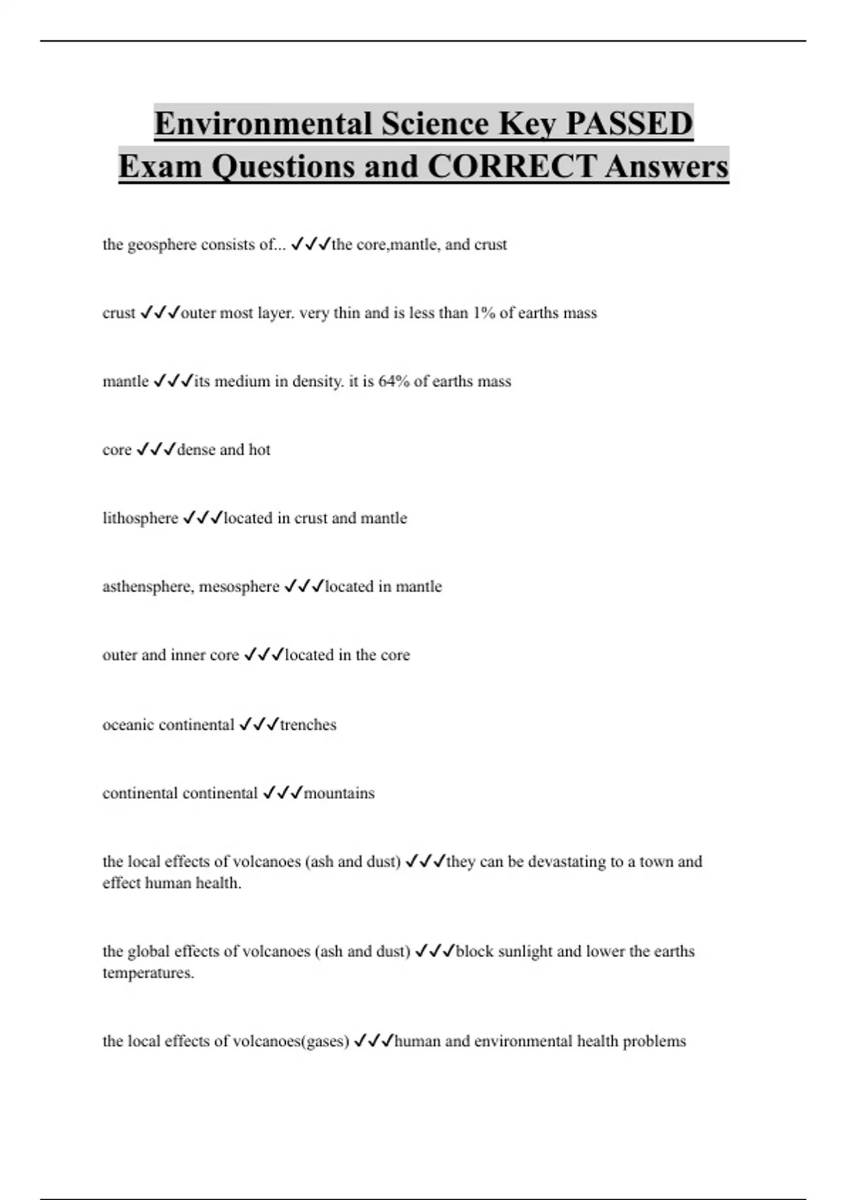 Environmental Science Key PASSED Exam Questions and CORRECT Answers