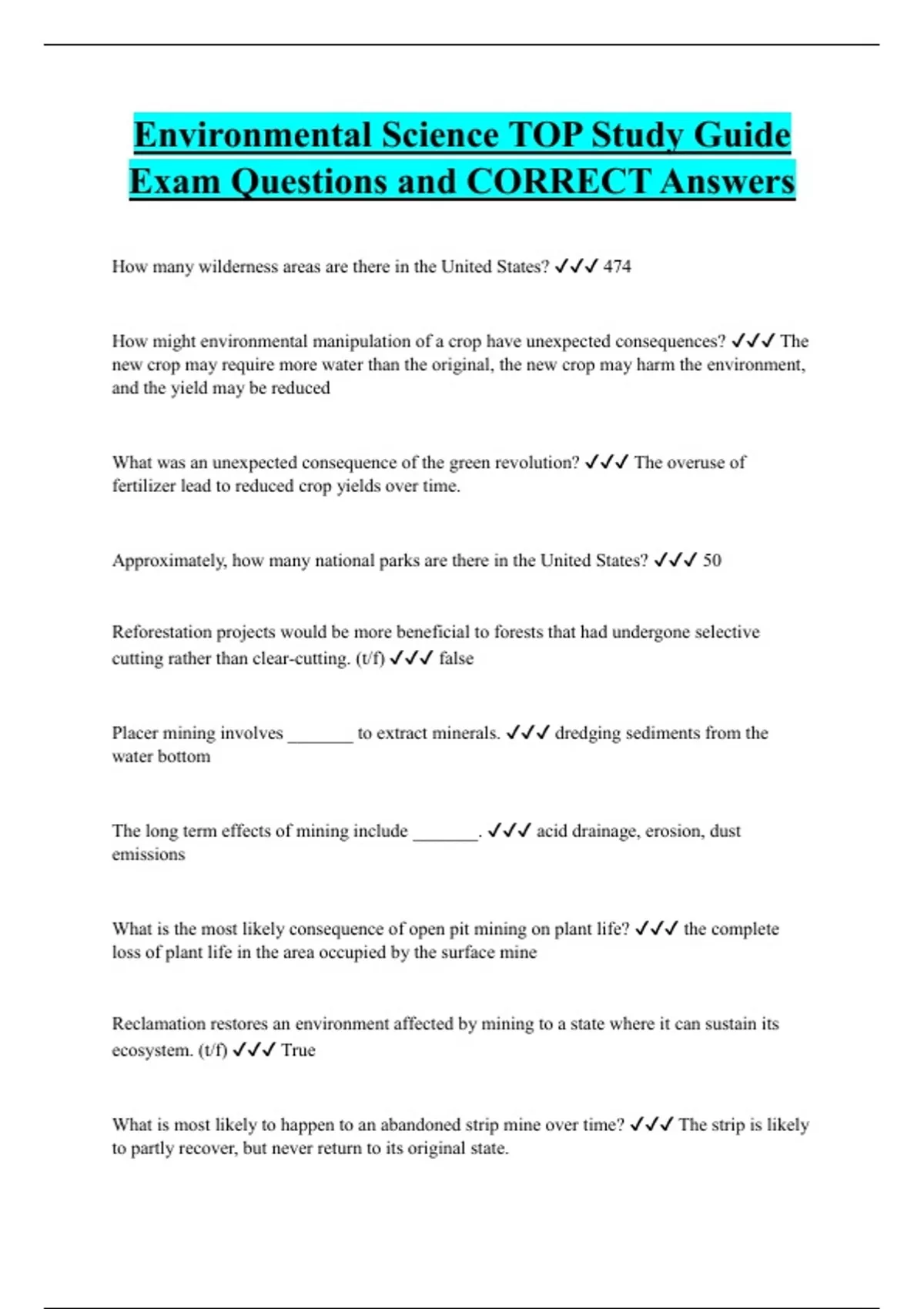 Environmental Science TOP Study Guide Exam Questions and CORRECT Answers