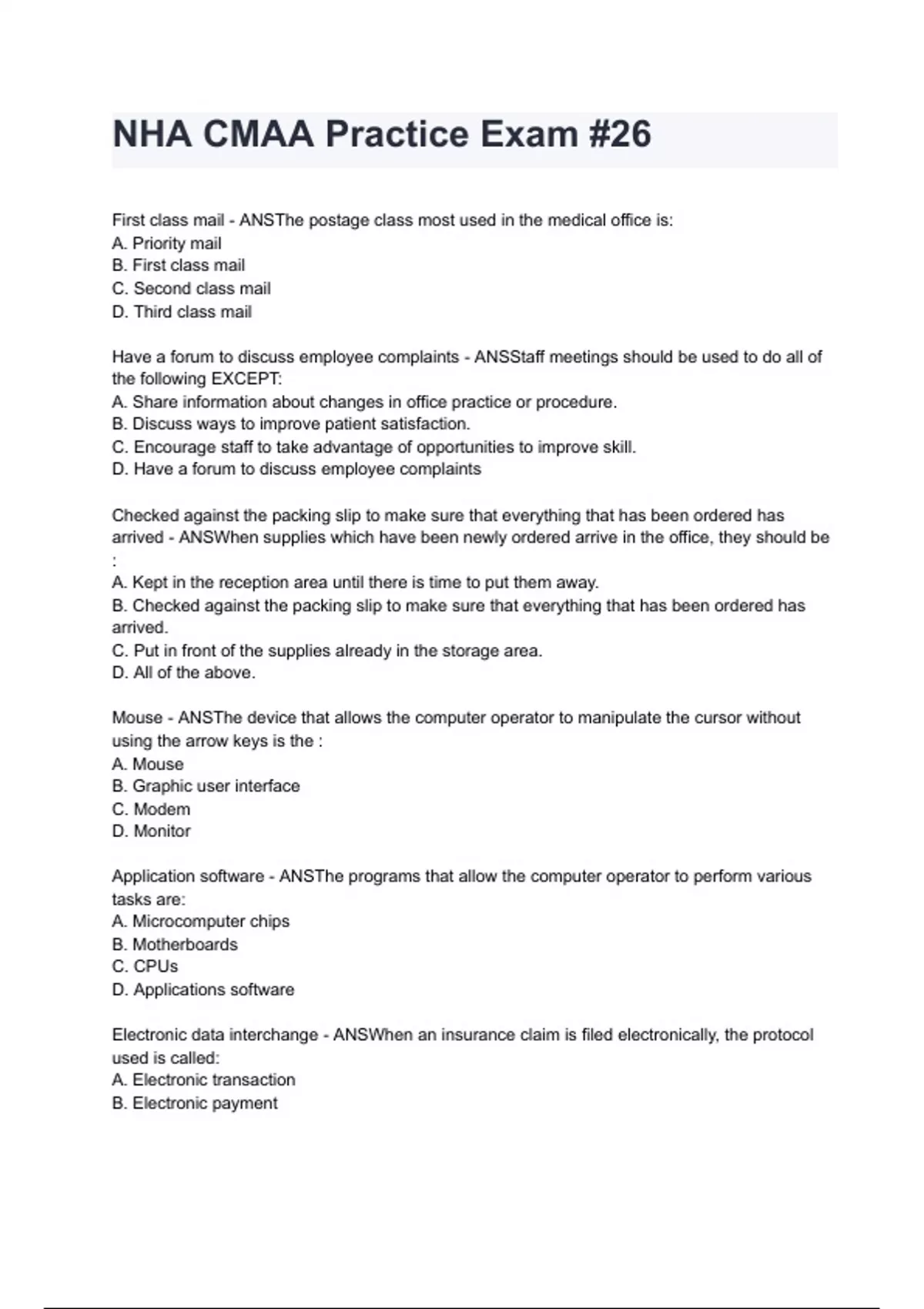 NHA CMAA Practice Exam #26 questions and answers A+ score assured 2024/2025