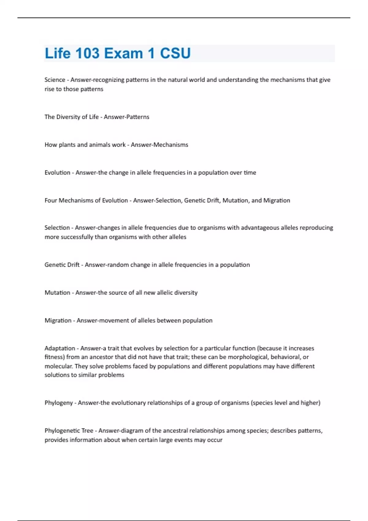 Life 103 Exam 1 CSU questions and answers all are correct 2024 graded A+