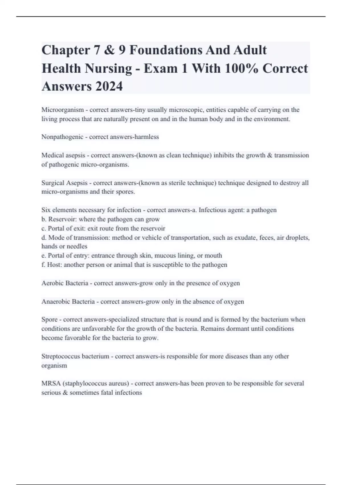 Anaerobic Bacteria - correct answers-grow only in the absence of oxygen