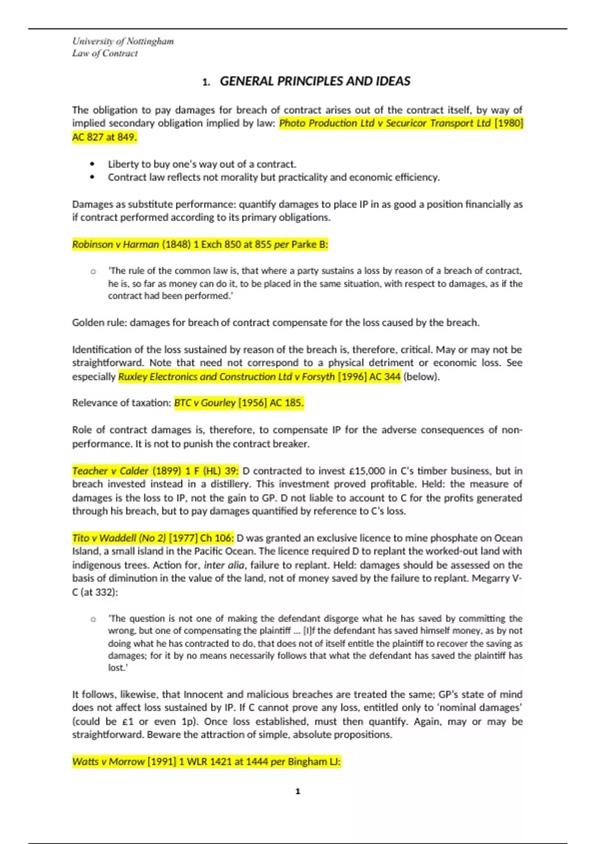 2. ASCERTAINING THE LOSS CAUSED BY THE BREACH (1): THE