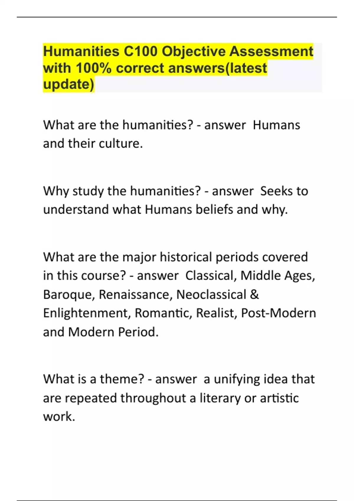 Humanities C100 Objective Assessment with 100% correct answers(latest update)