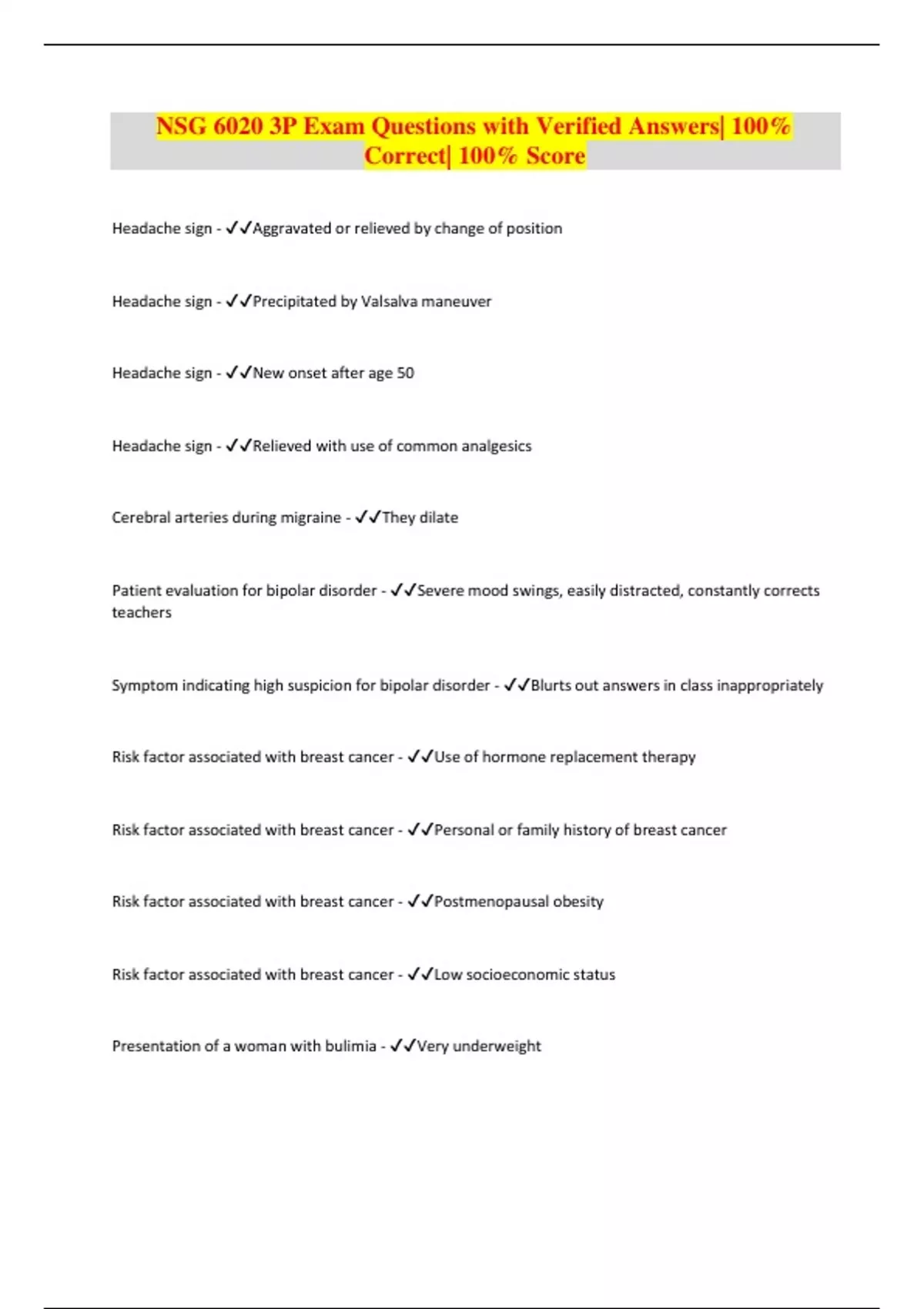 nsg 6020 3p exam questions with verified answers
