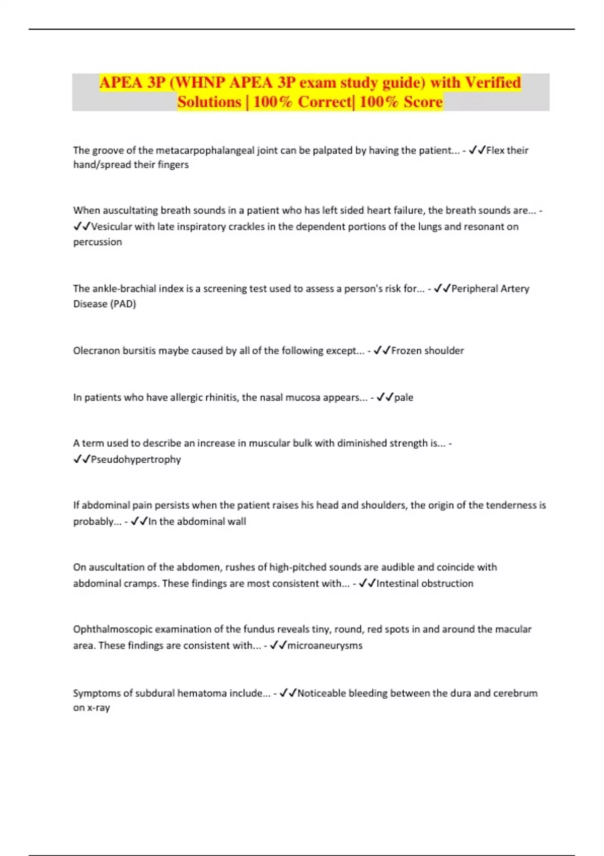 APEA 3P (WHNP APEA 3P exam study guide) with Verified Solutions | 100% Correct| 100% Score