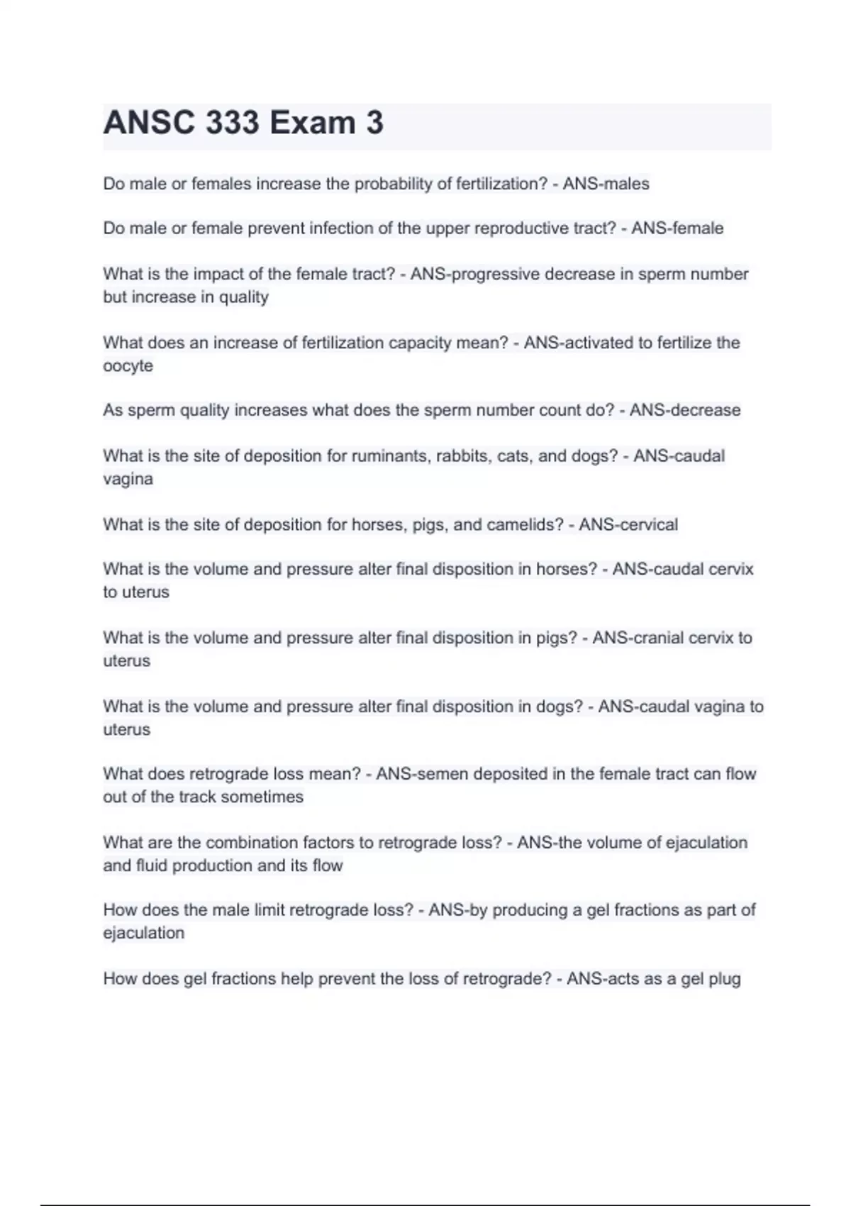 ANSC 333 Exam Bundle