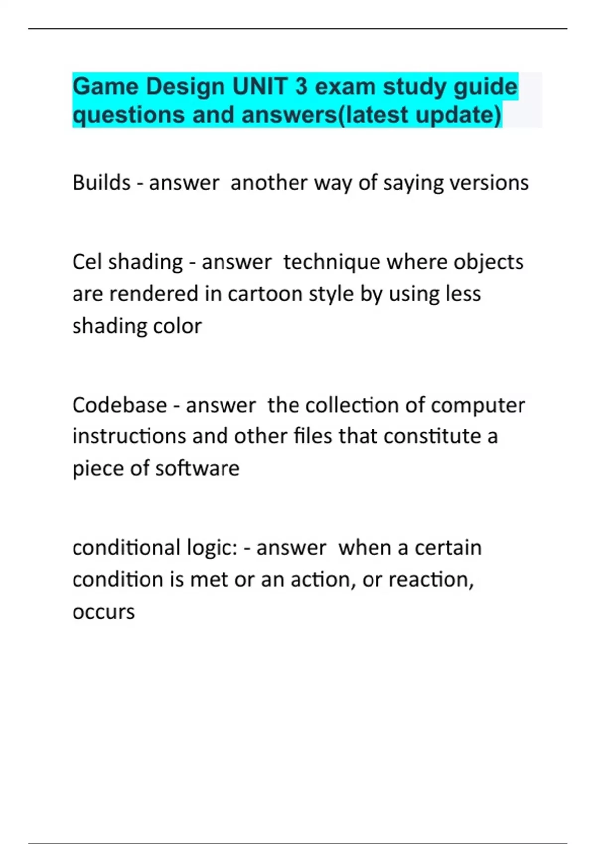 Game Design UNIT 3 exam study guide questions and answers(latest update)