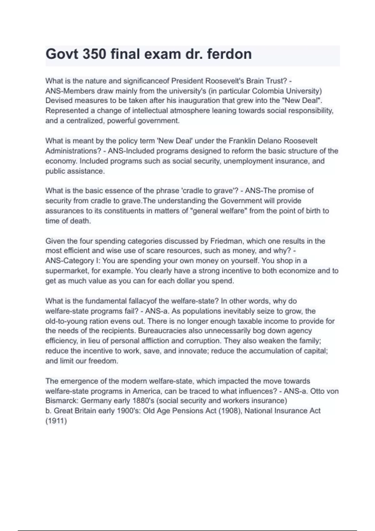 Govt 350 final exam dr. ferdon