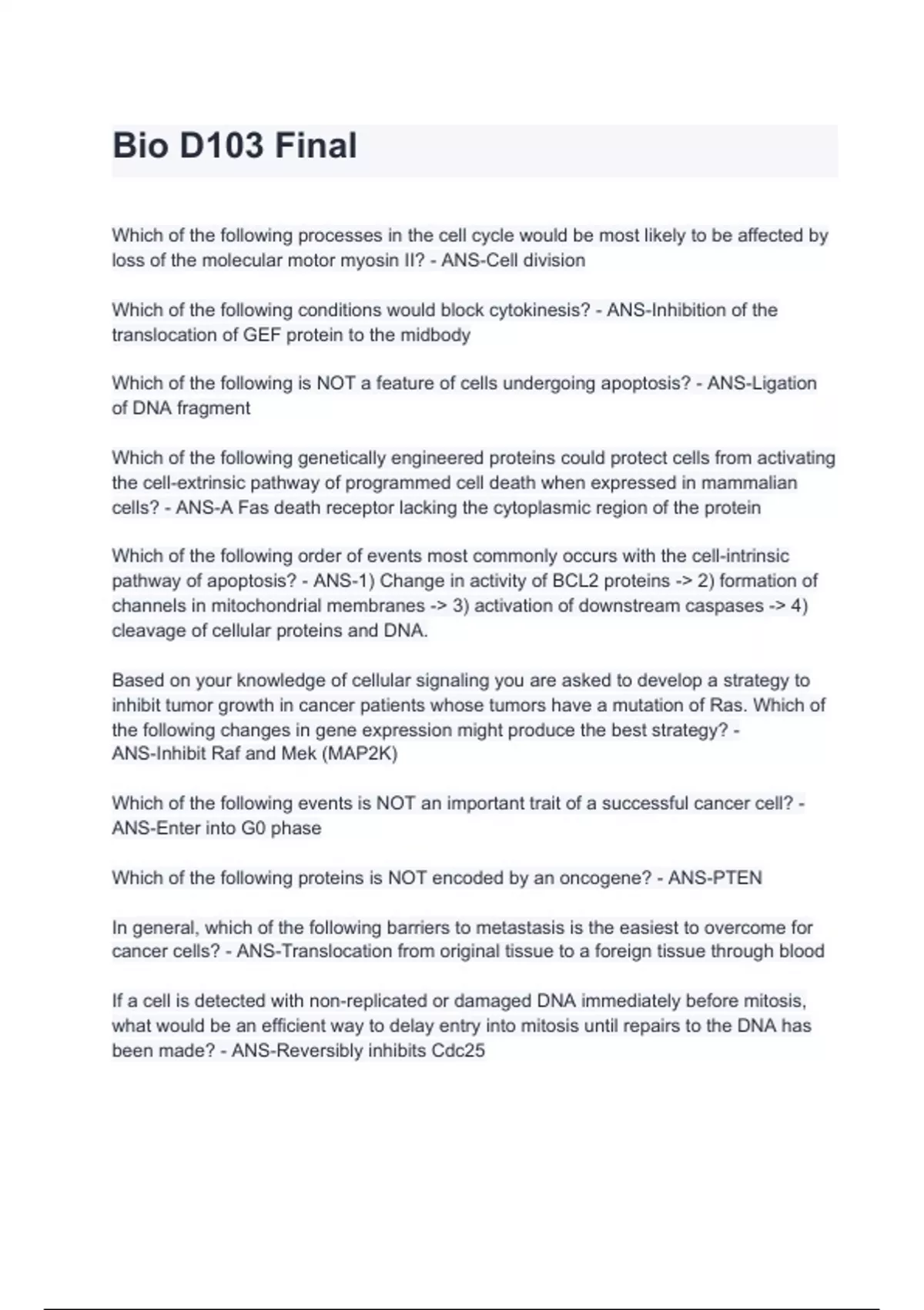 Bio D103 Final