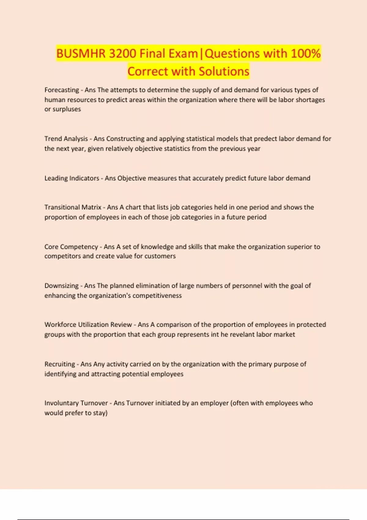 BUSMHR 3200 Final Exam|Questions with 100% Correct with Solutions