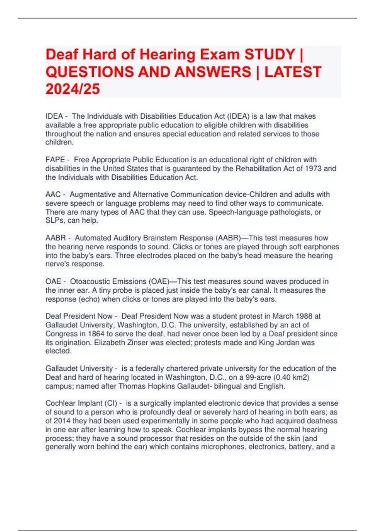 Deaf Hard of Hearing Exam STUDY | QUESTIONS AND ANSWERS | LATEST 2024/25