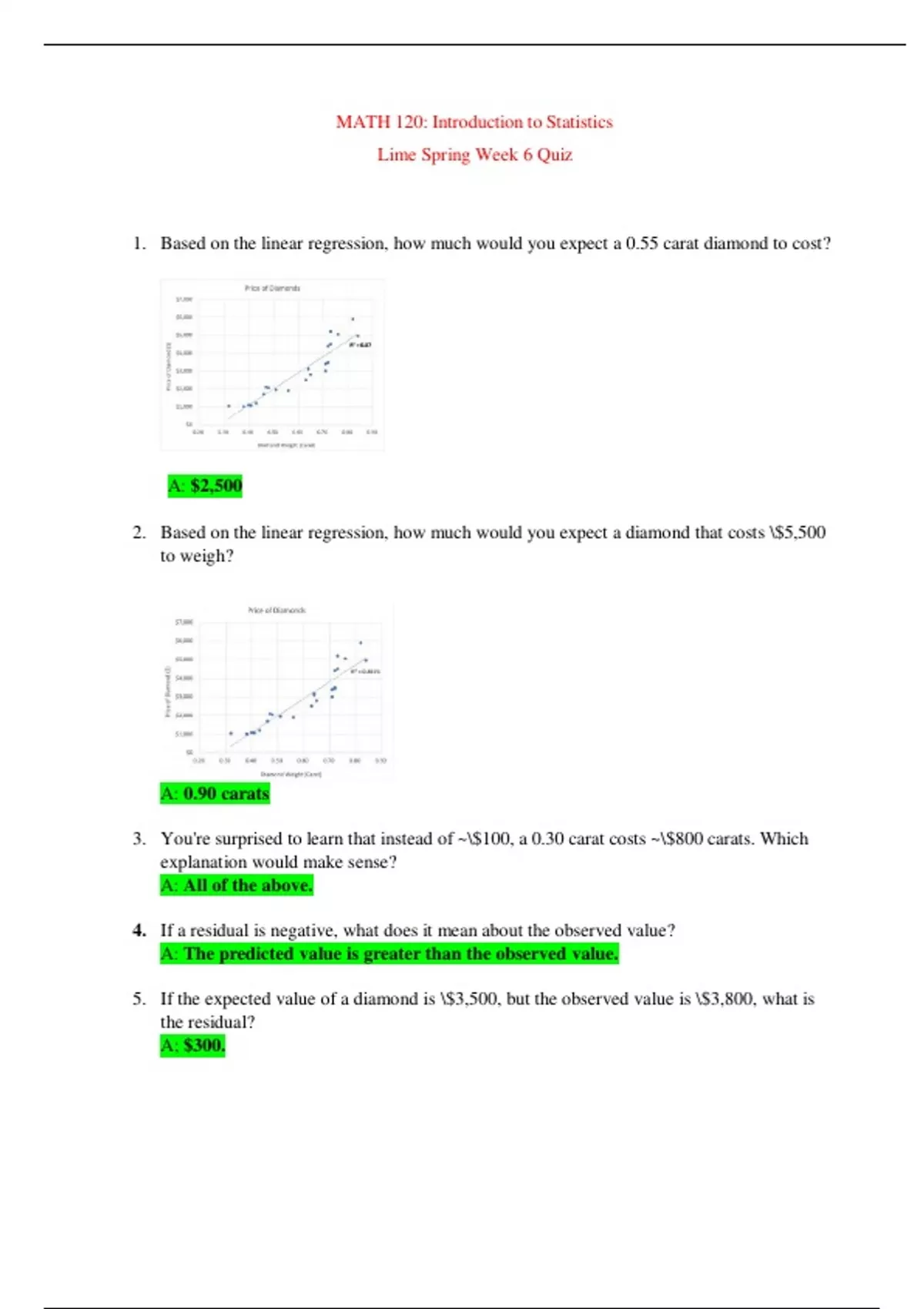MATH 120: Introduction to Statistics Lime Spring Week 6 Quiz