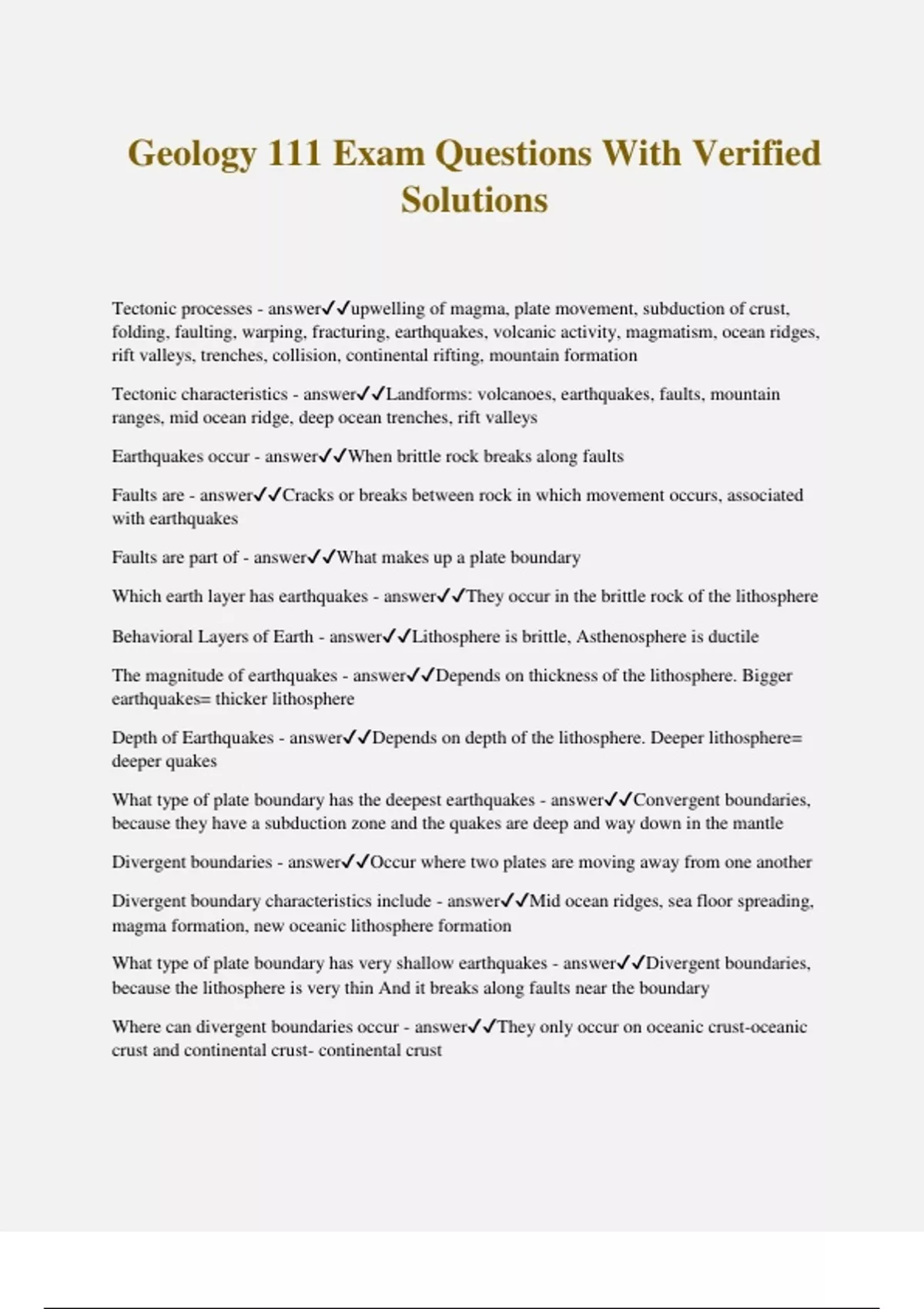 geology 111 exam questions with 100 correct answe