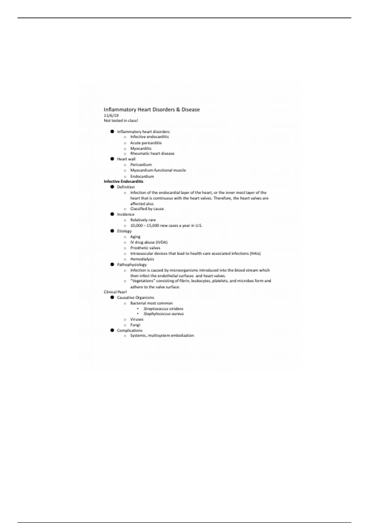 UNRS 212 - Inflammatory heart disorders notes