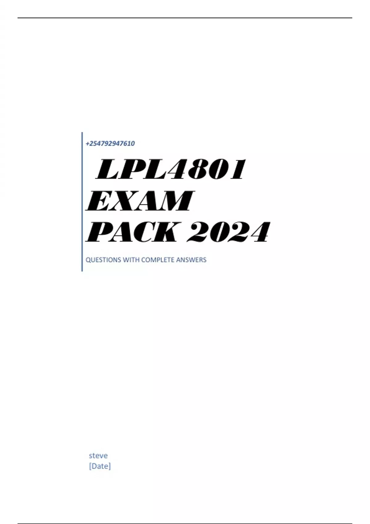 QUESTIONS AND ANSWERS LPL4801 EXAM PACK 2024