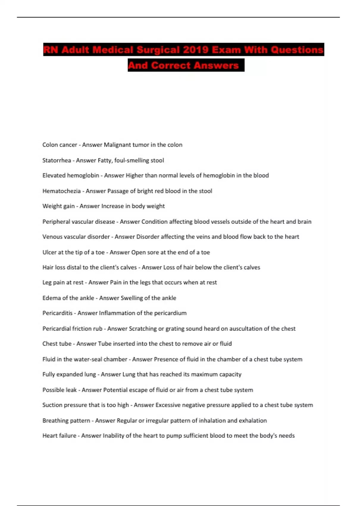 RN Adult Medical Surgical 2019 Exam With Questions And Correct Answers ...