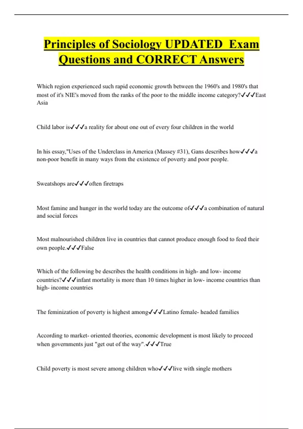 Principles of Sociology UPDATED Exam Questions and CORRECT Answers