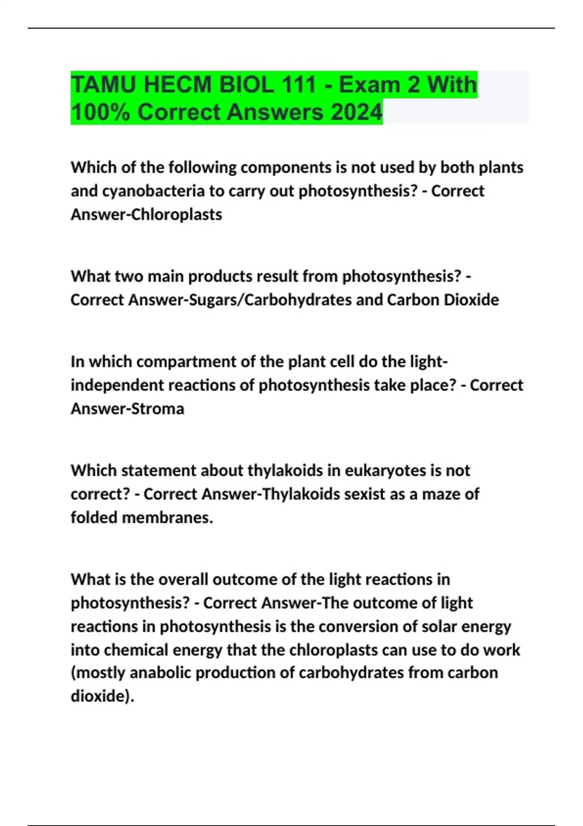 TAMU HECM BIOL 111 - Exam 2 With 100% Correct Answers 2024