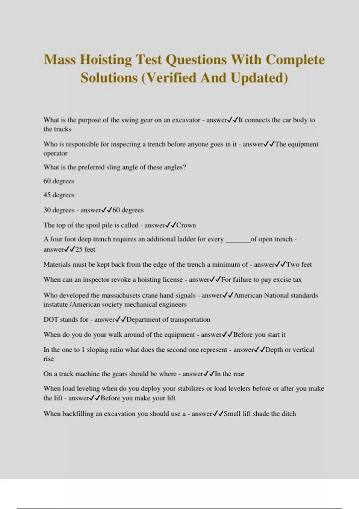 Mass Hoisting Test Questions With Complete Solutions (Verified And Updated)