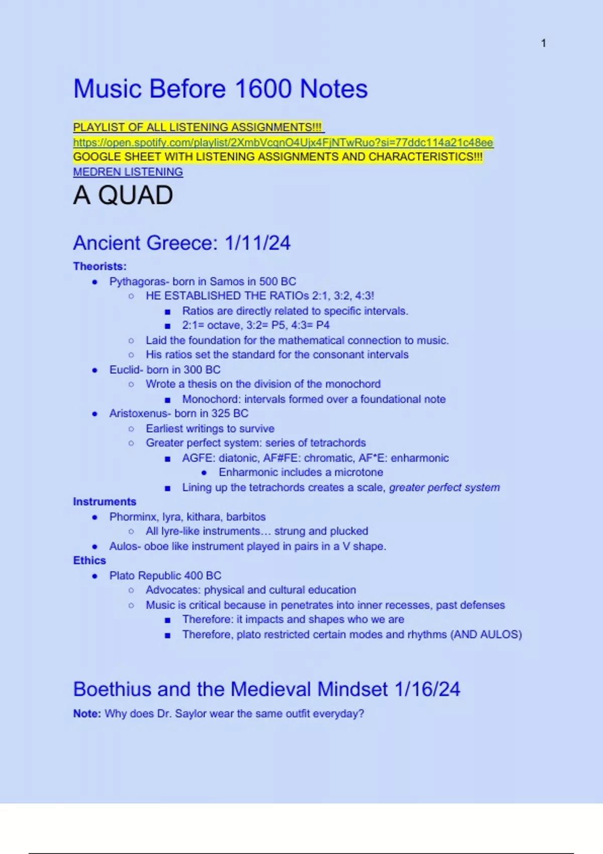 IN depth notes for MUCS 261 with answers from Thrills. (iykyk).