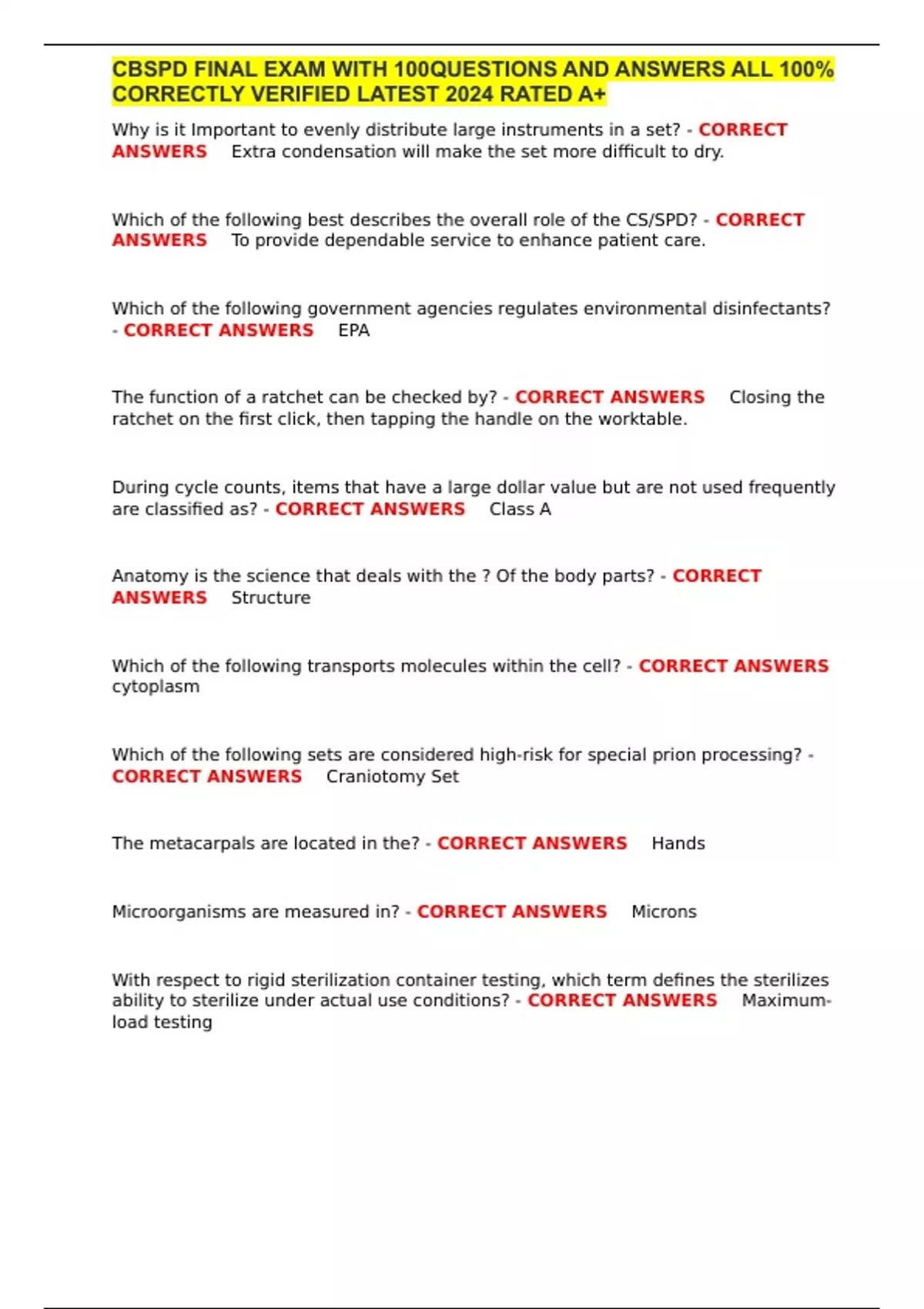 CBSPD FINAL EXAM WITH 100QUESTIONS AND ANSWERS ALL 100% CORRECTLY VERIFIED LATEST 2024 RATED A+