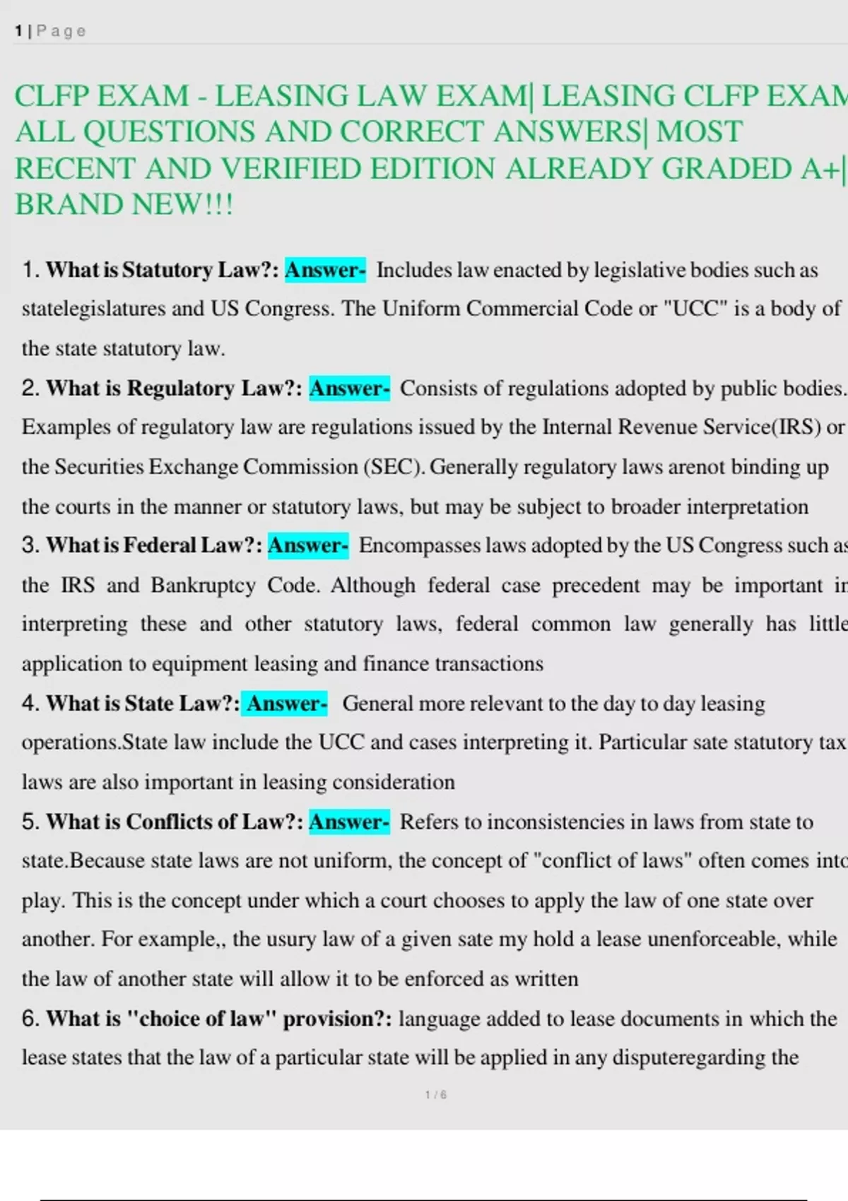 CLFP EXAM - LEASING LAW EXAM| LEASING CLFP EXAM ALL QUESTIONS AND CORRECT ANSWERS| MOST RECENT AND VERIFIED EDITION ALREADY GRADED A+| BRAND NEW!!!