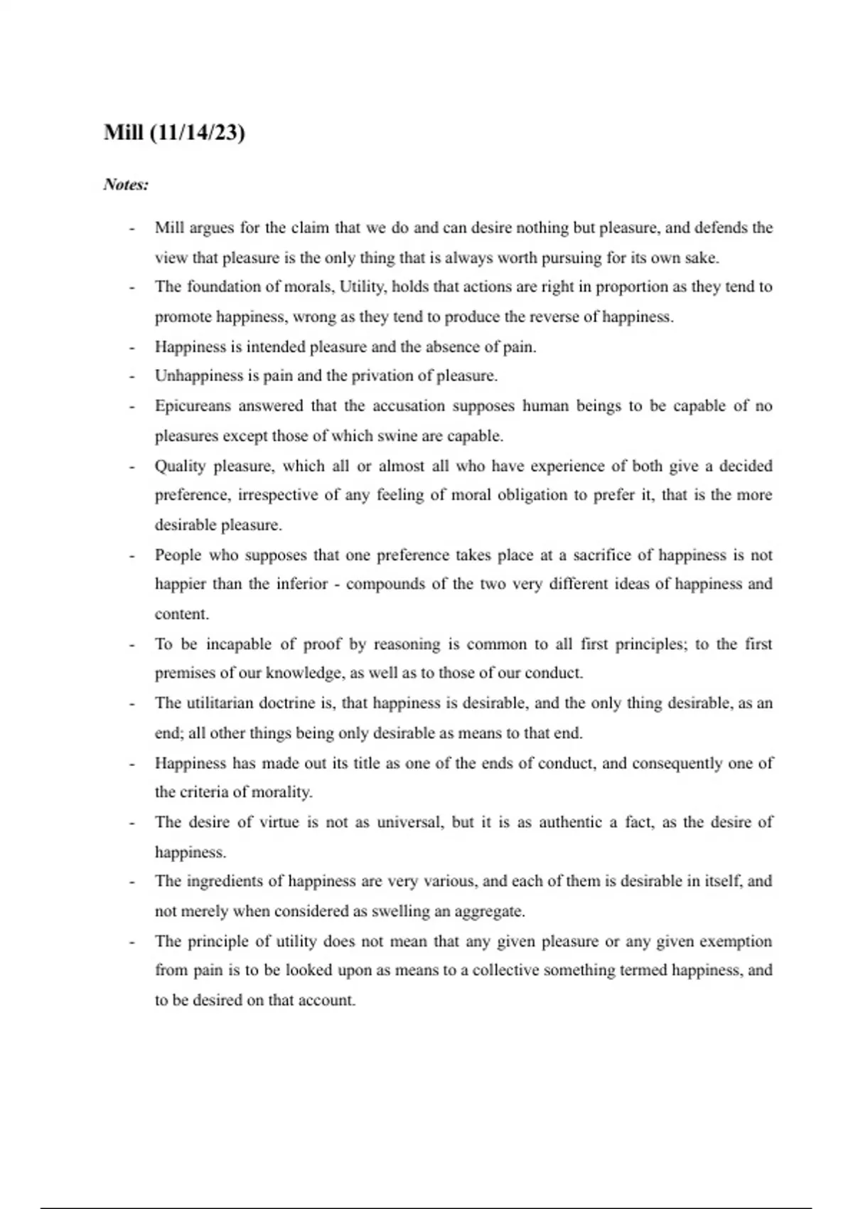 Class notes PHI2600: Introduction to Ethics