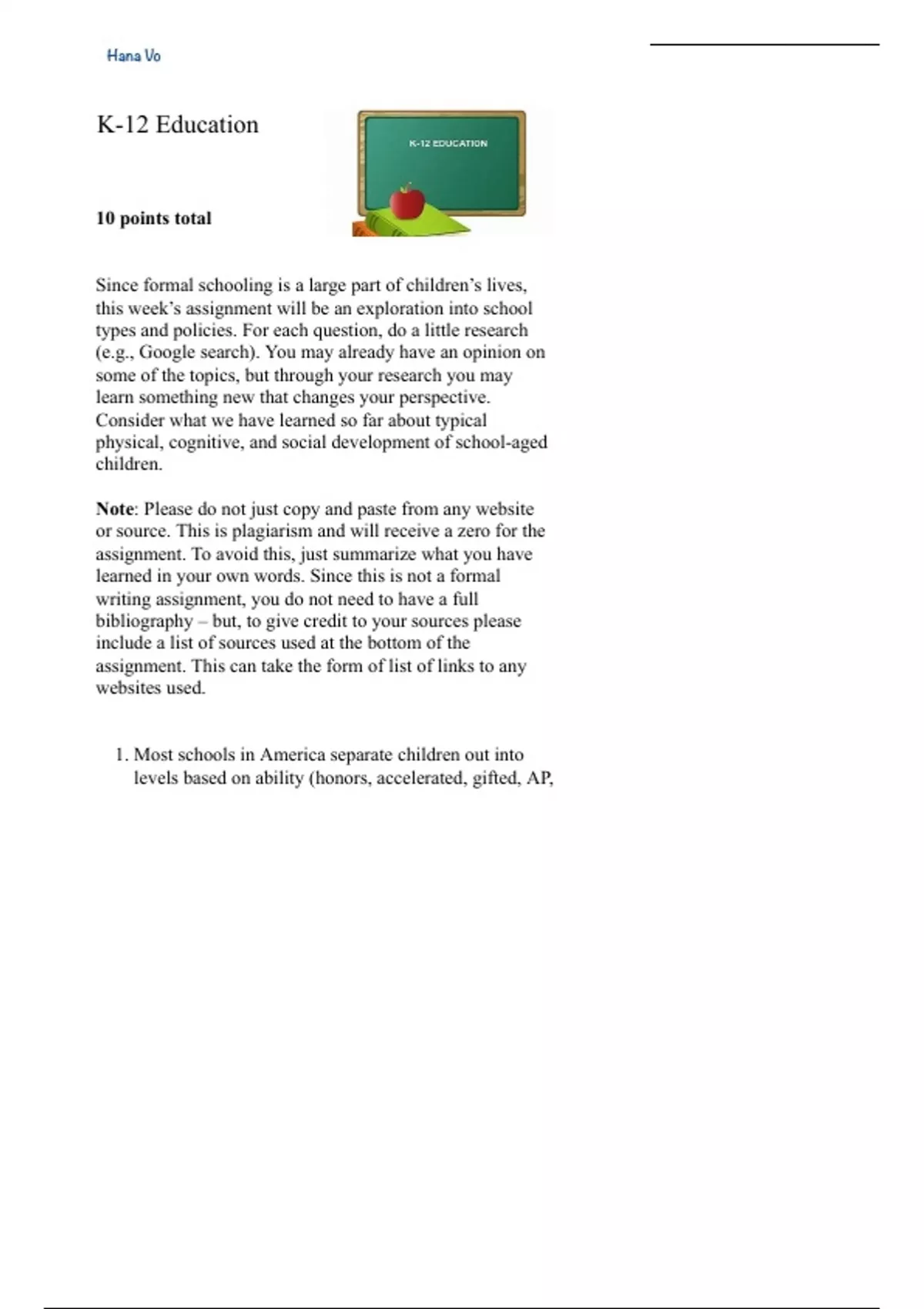 Summary of K-12 Education for course Developmental Psychology at SFC